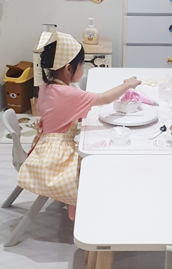 엄마 생일에 생일 선물로 실제 케이크를 만들고 있는 5세 아이의 모습이다.