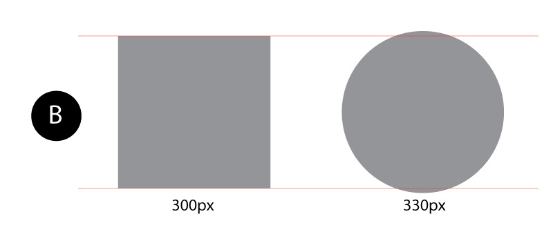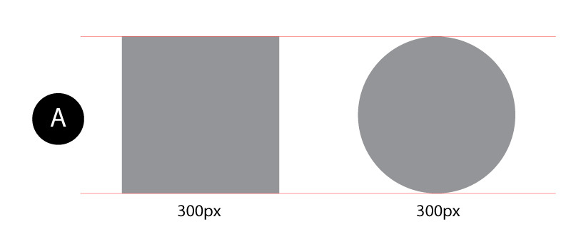 하지만 디자인적 측면에서 보았을 때, A의 사각형과 원형은 같은 높이 (300px)로 제작되었다.