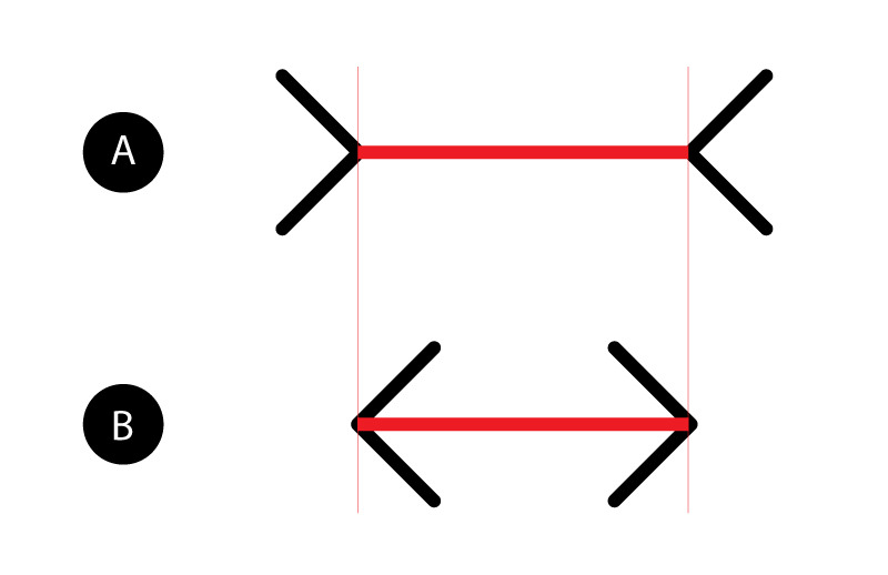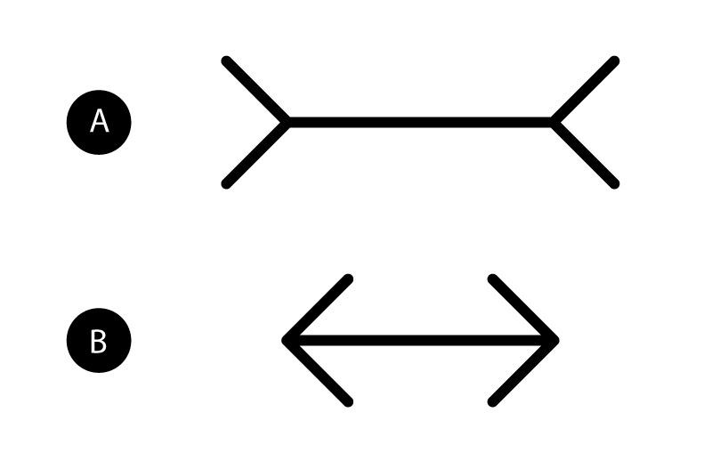 분명 같은 길이의 직선임에도 양 끝의 보조 화살표로 인해 길이가 다르게 보이는 현상이다.