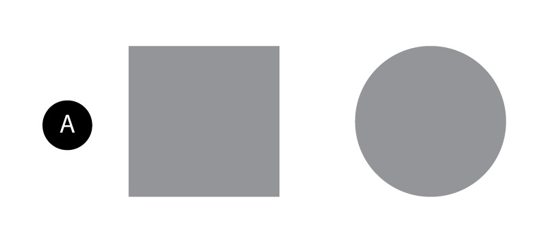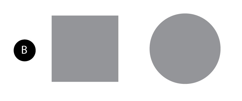 이번엔 B의 사각형과 원형의 크기를 비교해 보자. 어느 쪽이 더 시각적 무게가 느껴지는가?