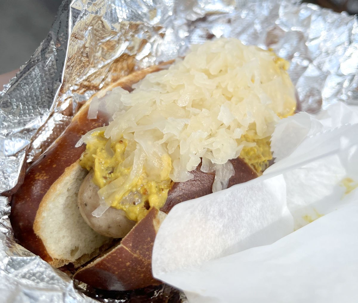 맞아요, 바로 옆의 소시지 바 스텁 (Stube : 독일말로 ‘room or bar’)에선 프레첼로 만든 핫도그도 맛볼 수 있어요. 소시지를 감싼 부드러운 프레첼은 쫄깃쫄깃하고 부드러운 식감이 예술이죠. 이 프레첼은 우리 아니면, 뉴욕에서 구할 수 없어요. 도저히 우리가 원하는 퀄리티를 찾을 수 없어서, 독일에서 직수입해 왔답니다.