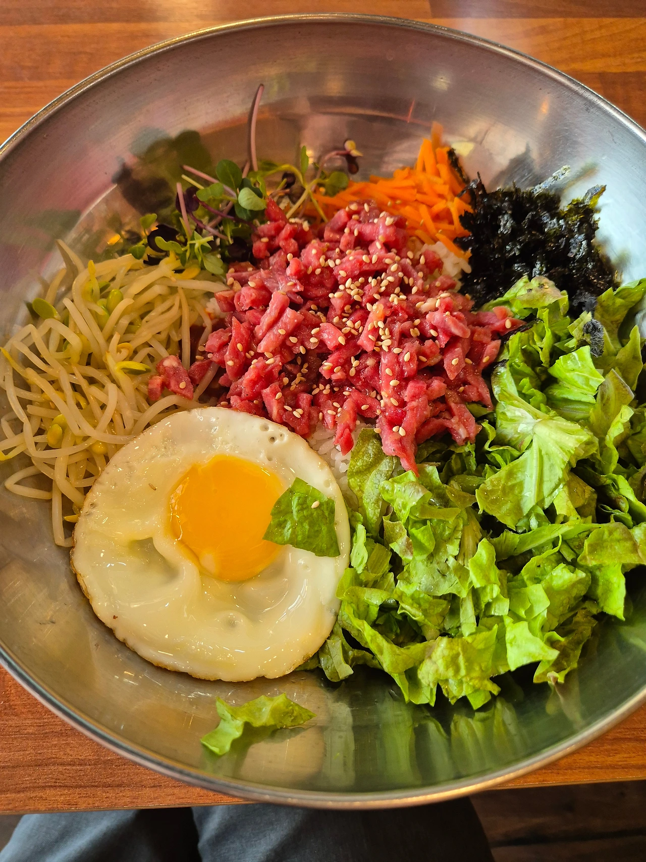 1시 전후에 때를 잘 맞춰 도착하면 최애 식사인 육회비빔밥을 먹을 수 있다.