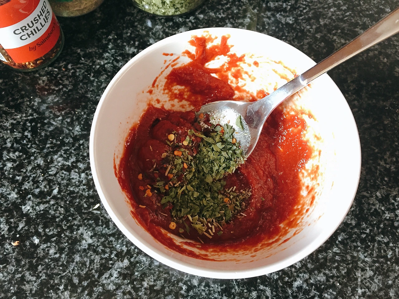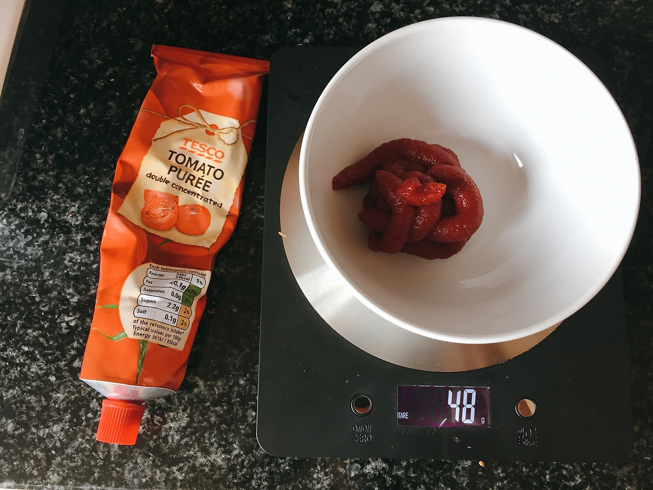 1. 토마토 페이스트 또는 Puree라고 불리는 것을 50그램 짜 본다