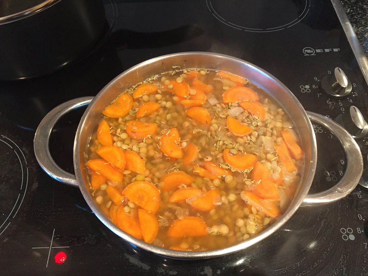 4. 렌틸콩을 먹어보고 익으면 불을 끄고 소금, 후추를 넣고 간을 해준다.
