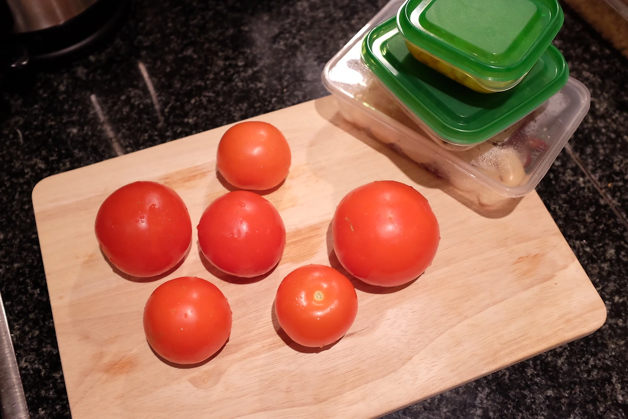 1. 냉장고를 열고 토마토와 다음에 써야지 했던 야채들을 꺼낸다