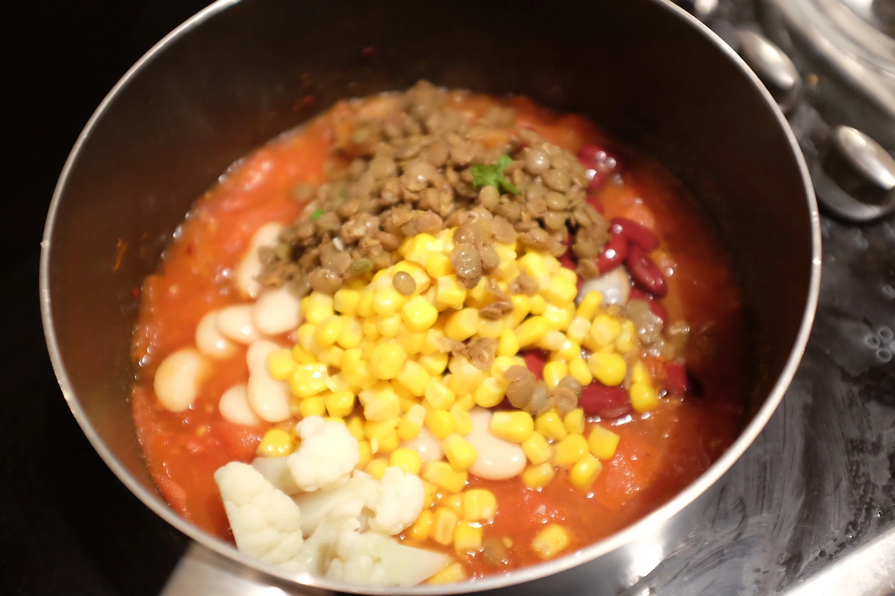 나처럼 콩 종류를 넣어줘도 좋고 집에 있는 재료를 넣어도 좋다. 좋아하는 야채를 듬뿍 넣고 약불로 끓여주자.