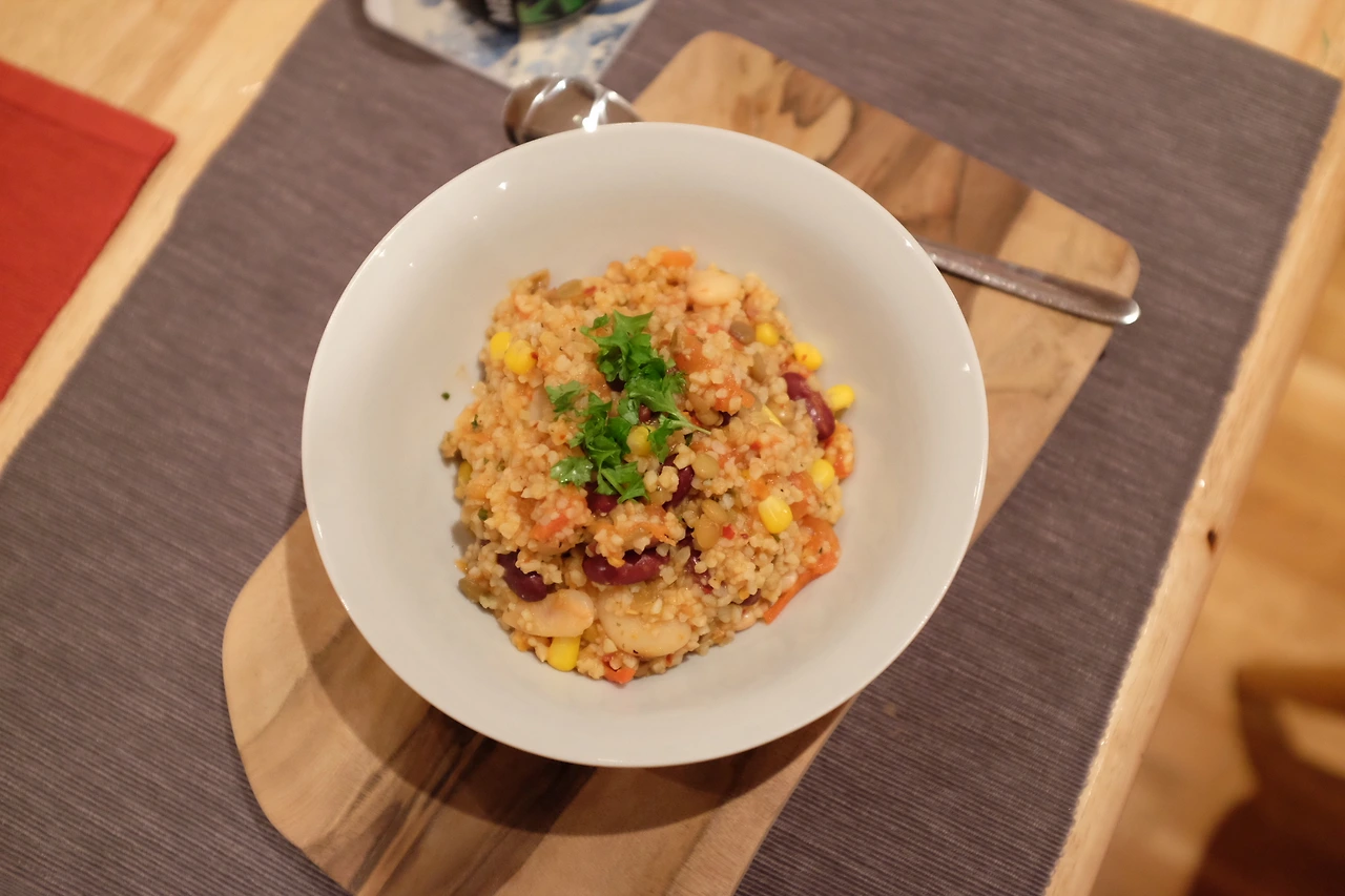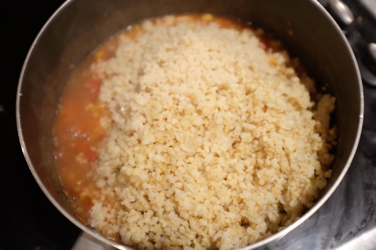 나는 Bulgur라는 곡류를 사용했는데 내가 가장 좋아하는 곡물로 현미보다 칼로리도 낮고 단백질과 미네랄 함량도 높아서 밥 대신 먹고 있다. 안타깝게도 Bulgur는 한국에서 구하기 쉽지 않기 때문에 집에서 먹는 밥을 넣어주면 된다.