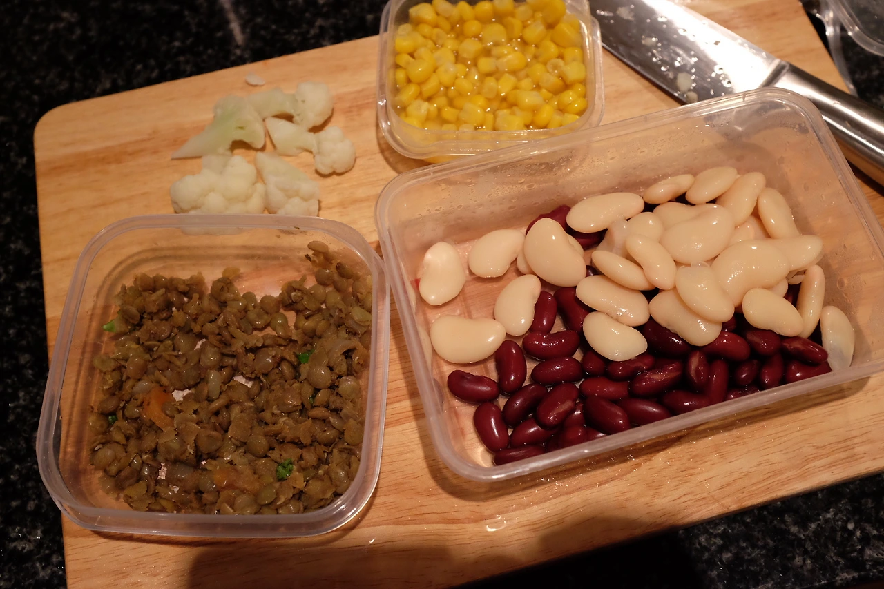 우리 집 냉장고에는 며칠 전 Soup를 끓이고 남은 각종 beans들이 가득해서 요 아이들을 사용했다.