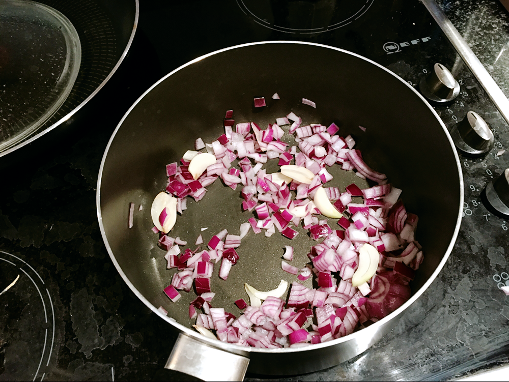 2. 마늘과 양파를 먼저 넣고 볶아주다가 양파가 흐물흐무르 하면,