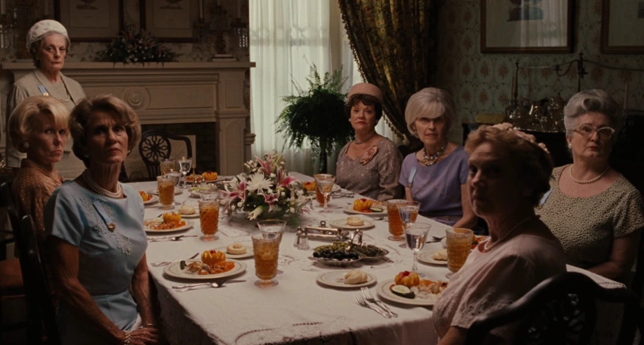 취직을 했다는 스키터의 말에 축하의 말을 건네지만, 전혀 관심도 진심도 없는 표정과 말투. 스키터가 친구들과 다른 세상에 속해있다는 걸 보여주는 장면 중 하나. 시대가 그런 시대였다지만, 무엇이 어떻게 달랐던 걸까. 같이 어울려도 스키터처럼 주체적으로 생각하며 자랄 수 있었던 건.