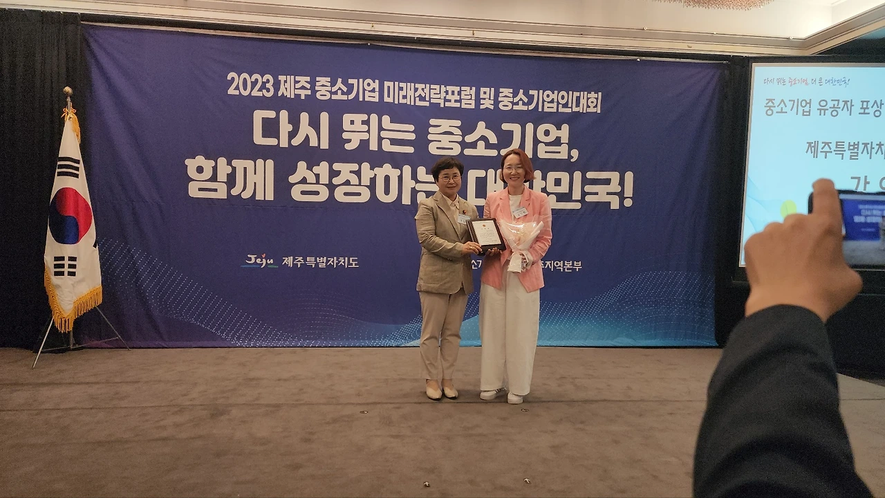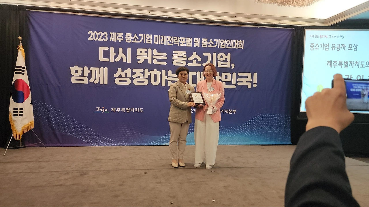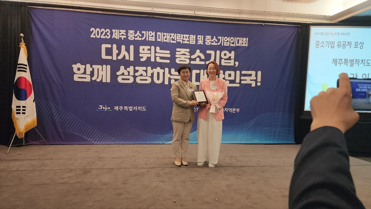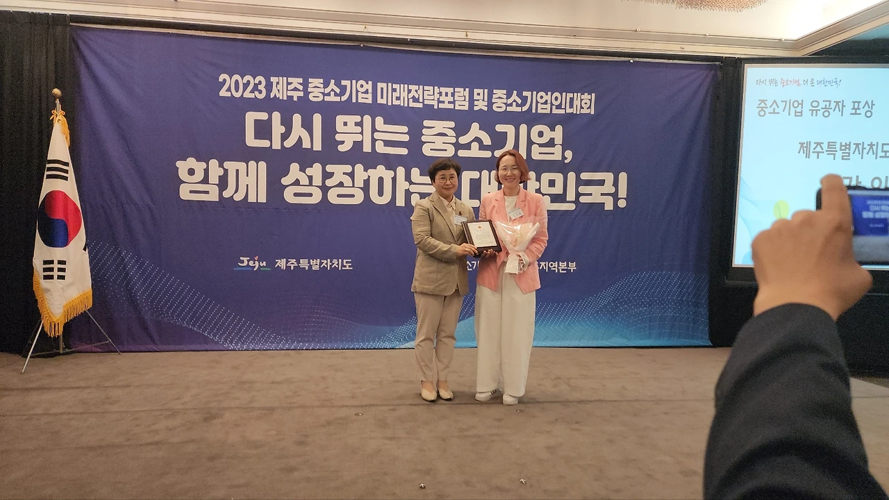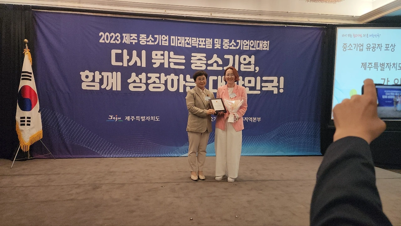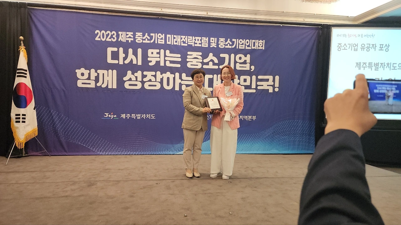 올해 제주도의장상으로 모범기업인상을 받았어요