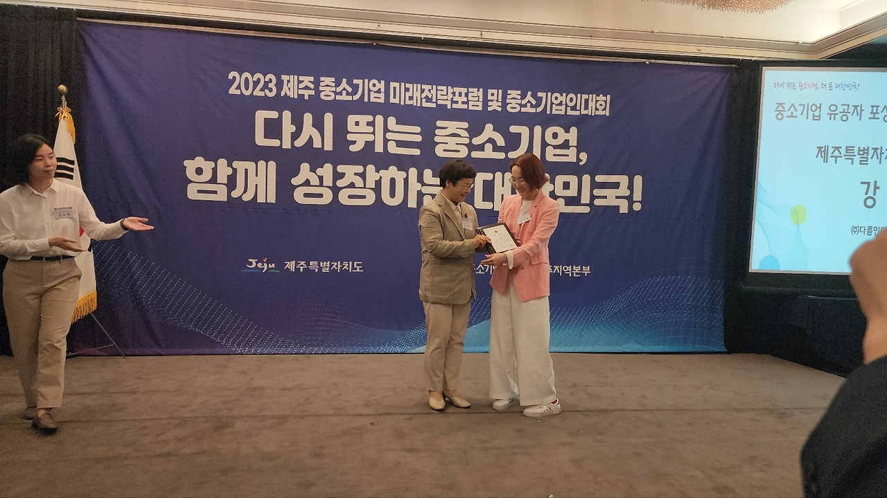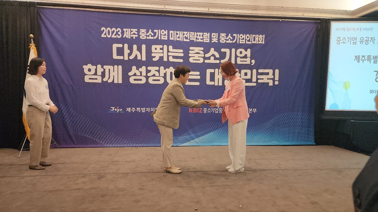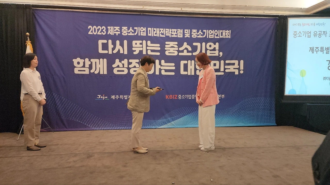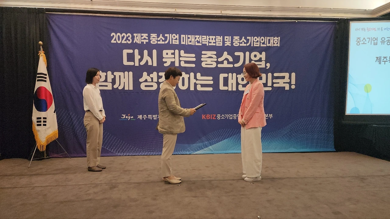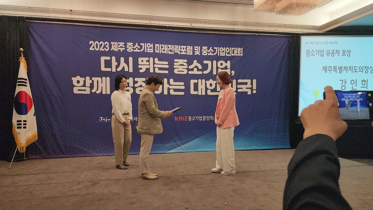 올해 제주도의장상으로 모범기업인상을 받았어요
