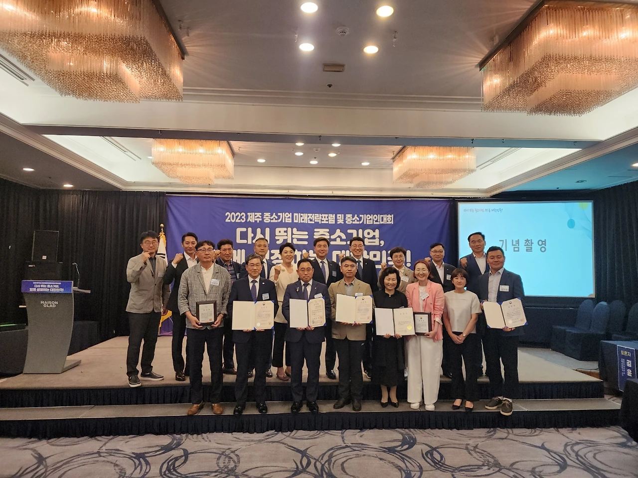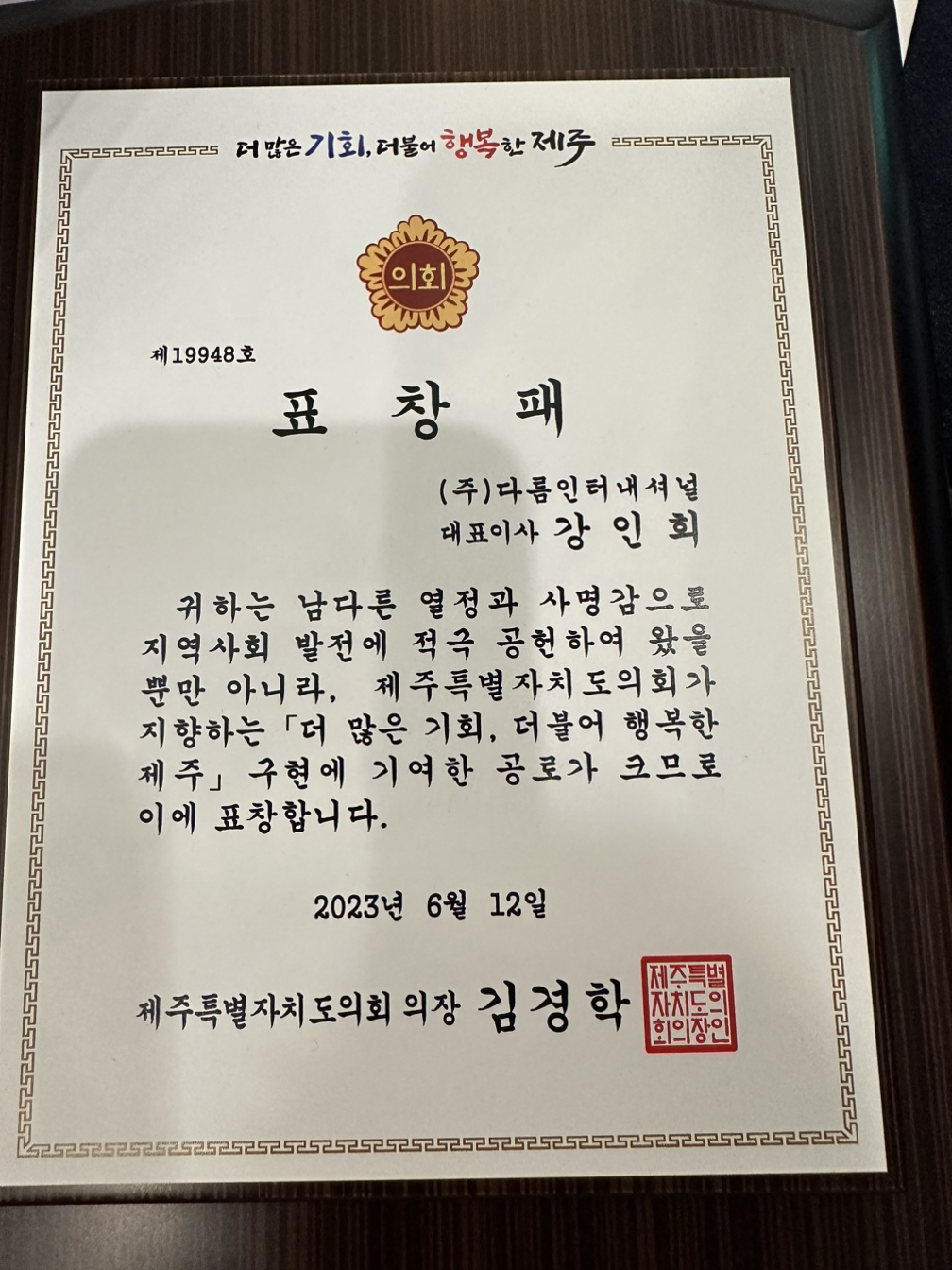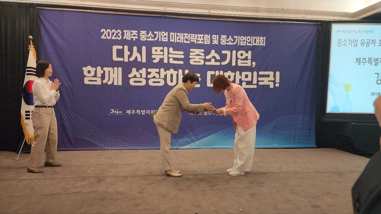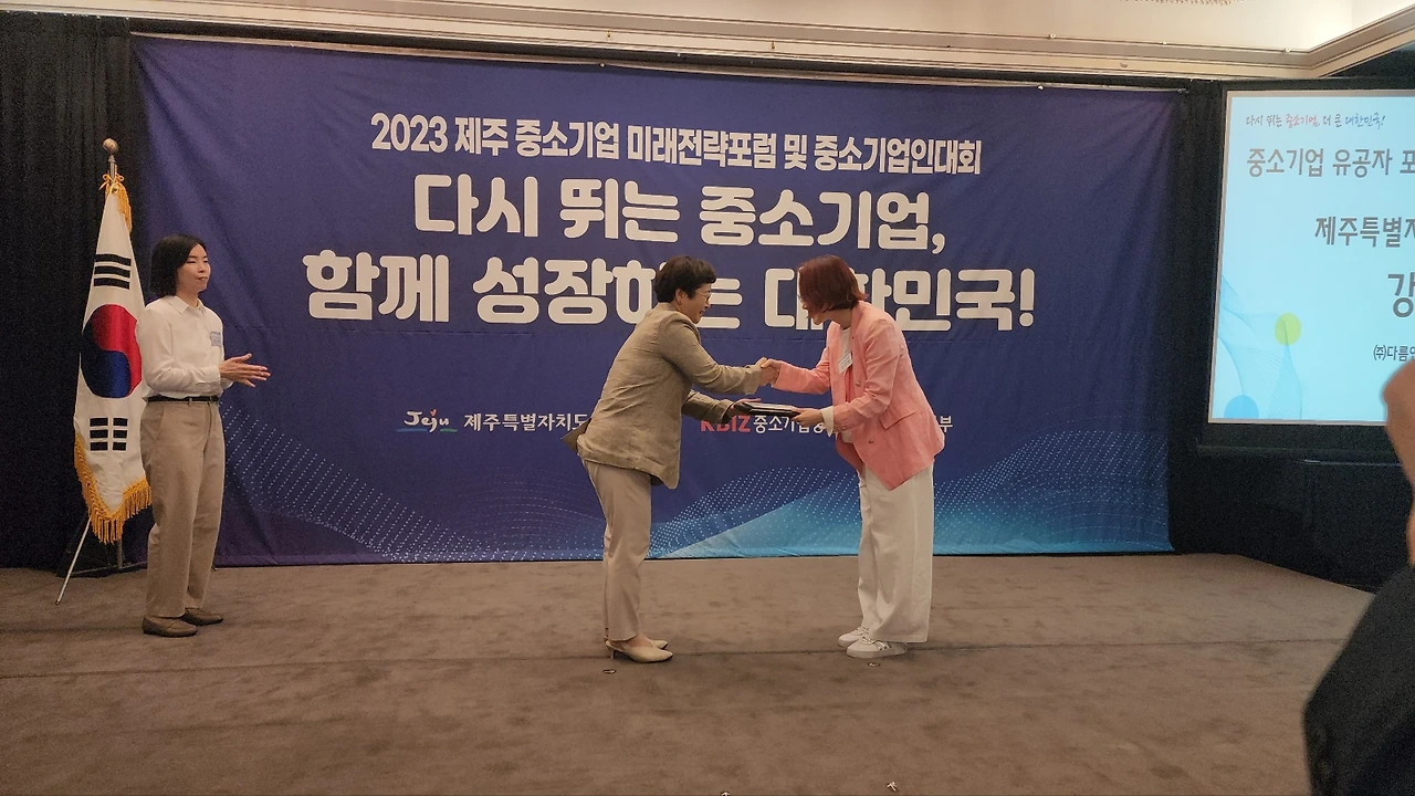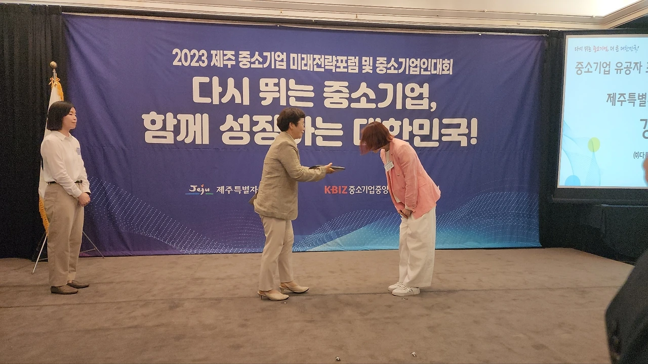 올해 제주도의장상으로 모범기업인상을 받았어요