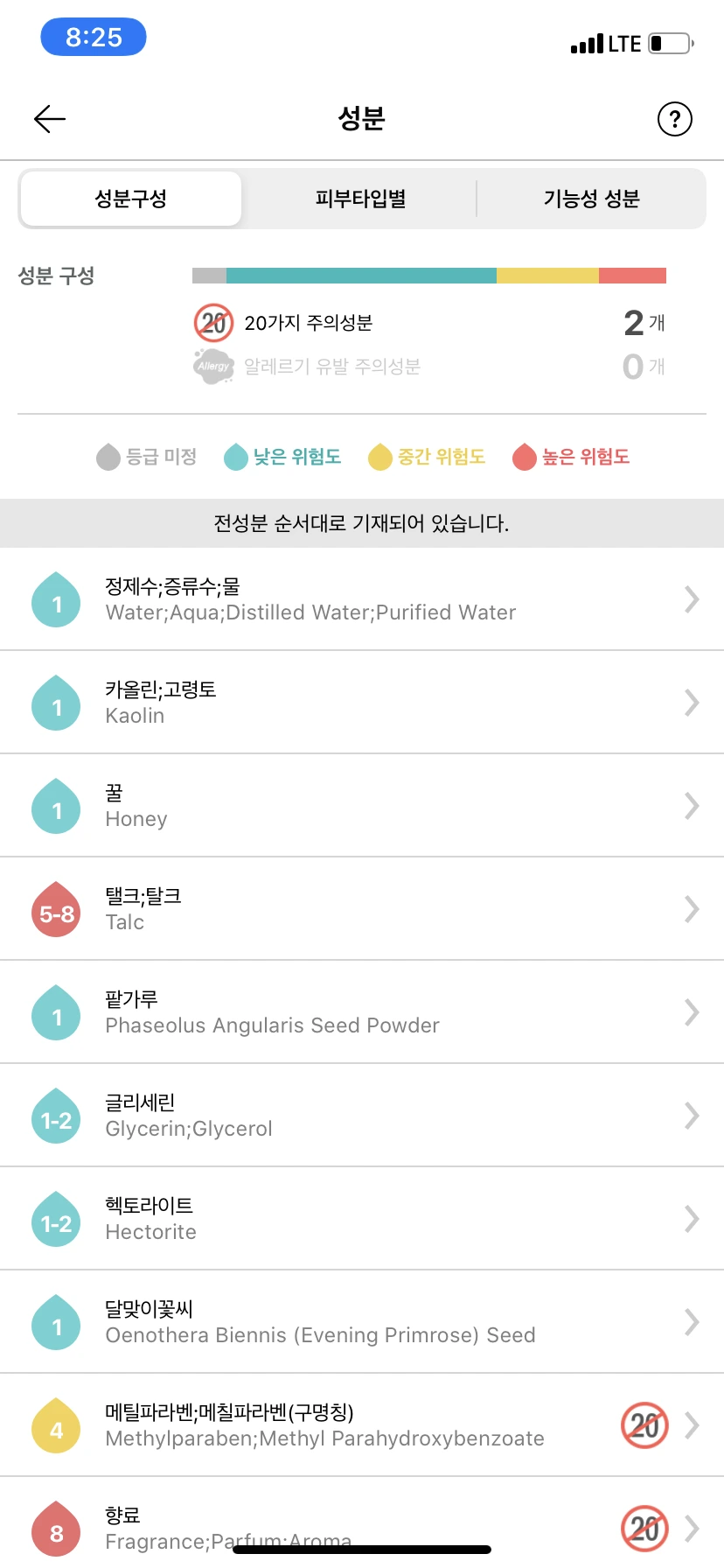 전성분 정보를 알게 된 소비자들에게는 또 다른 문제가 생기는데, 바로 성분에 대한 이해도가 없어 좋고 나쁨을 구분할 수 없다는 것이다. 화해는 단순히 전성분 정보만 제공한 것이 아니라, 이 성분이 좋고 나쁨을 구분할 수 있는 가이드를 주었다. 화해가 직접 좋고 나쁨은 판단한 것은 아니고 미국의 EWG(Environmental Working Group)라는 비영리 환경단체에서 만든 안전도 등급을 활용해 비주얼 라이징 해 보여주었다. 그러니까 정말 새로운 것이 아니라 기존에 있던 것을 가져다가 소비자 눈높이에 맞게 잘 버무려서 보여준 것이다. (나는 사실 기획은 이런 것이라 생각한다) EWG에서 제시하는 등급이 백 프로 과학적이라거나 정답은 아니고 논란도 꽤 많았지만, 어찌 됐든 어떤 기준이든 기준이 필요했던 2013년 당시에 이 기준은 소비자들의 구매의사 결정에 주요한 지표가 된다. 아래의 이미지들이 화해에서 제공하는 성분 정보이다.