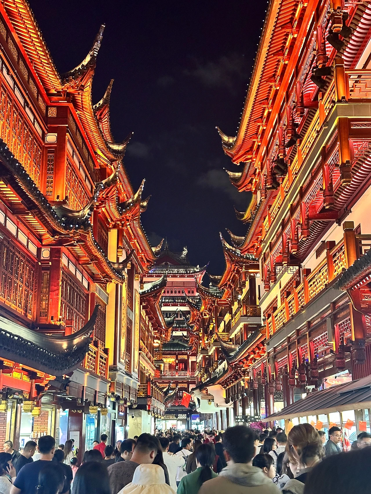 예원은 상하이 관광지 중 가장 유명한 장소라 해도 과언이 아닐 것 같다. 나 또한 상하이에 도착해서 가장 먼저 간 곳이 예원이었다. 개인적인 느낌으로는 광화문에 있는 경복궁 혹은 창덕궁 같은 느낌이었다. 도심 한복판에서 느끼는 과거의 장소. 아름다운 정원과 중국 전통 건축양식을 느낄 수 있는데, 낮에도 예원 앞 거리의 먹거리와 길거리의 다양한 기념품을 구경하는 재미가 있지만, 예원이 유명한건 조명이 켜진 야경일 것이다.