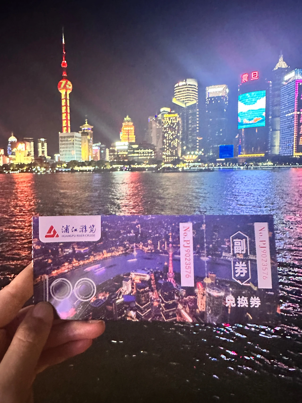 유람선을 타면 기본으로는 모두 서서 보게 되는데, 100위안을 내면 넉넉한 공간에서 유람선 난간을 쉽게 오가며 볼 수 있고 따뜻한 음료(밤의 강바람은 은근 춥다)와 간식도 무제한으로 먹을 수 있는 이점이 있다. 꼭 좌석으로 앉기를 강추한다. 유람선에서 야경을 보고 내려서 유럽 건물양식의 와이탄 거리도 꼭 걸어보길.