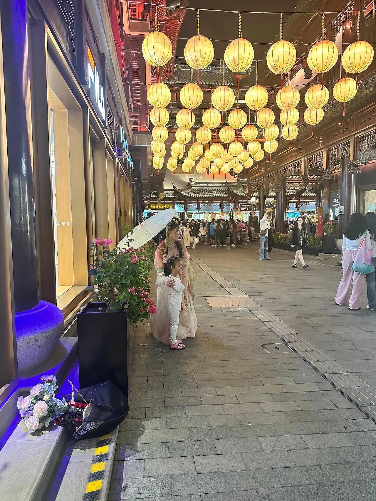 예원의 야경은 정말 예술이다. 그 야경의 거리를 그냥 걷는 것보다 왕홍메이크업을 하고 명나라, 청나라 때의 옷을 입고 걸어보면 어떨까. 중국에 대한 감정과 별개로, 여행자로써 실제 메이크업과 복장을 하고 걸어보니 단 몇시간이지만 과거로 돌아간 것 같았고 시간여행을 하고 있는 기분이 들어서 좋았다.