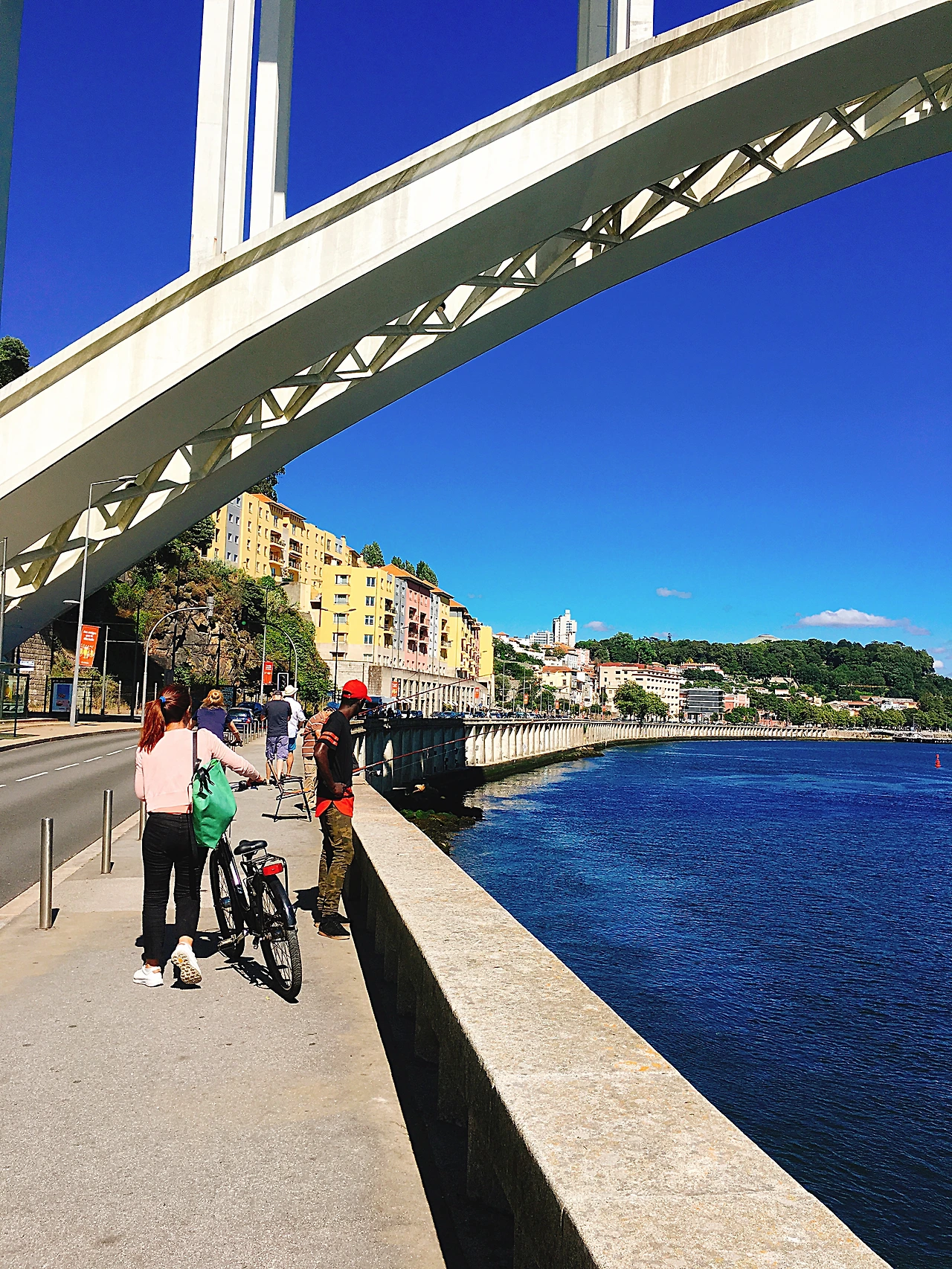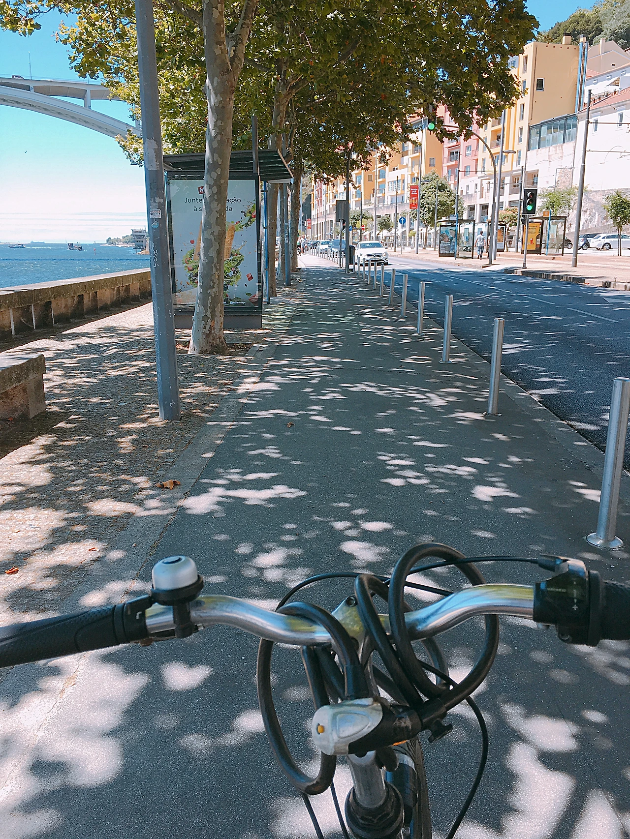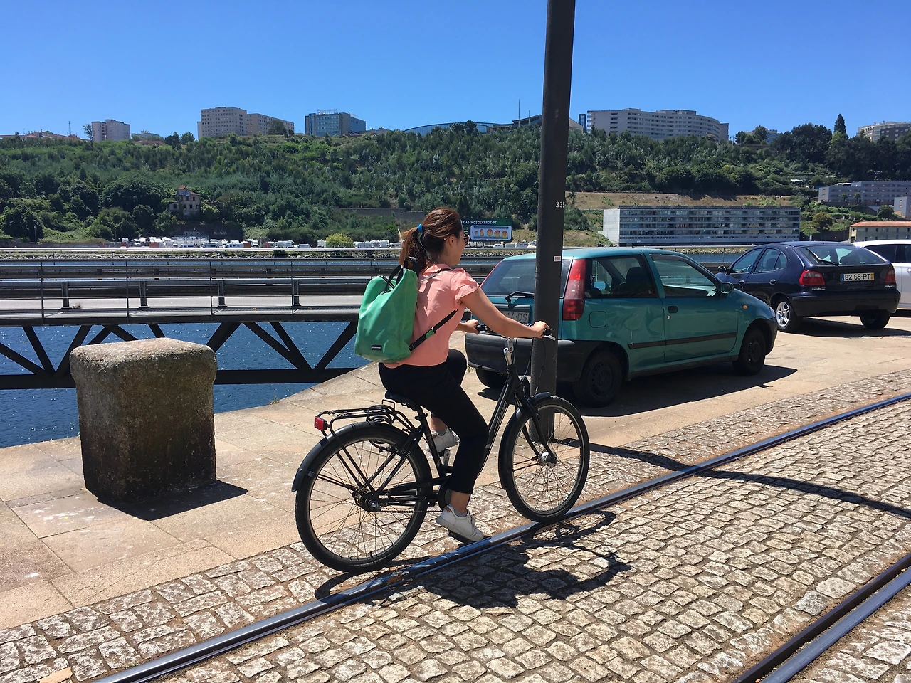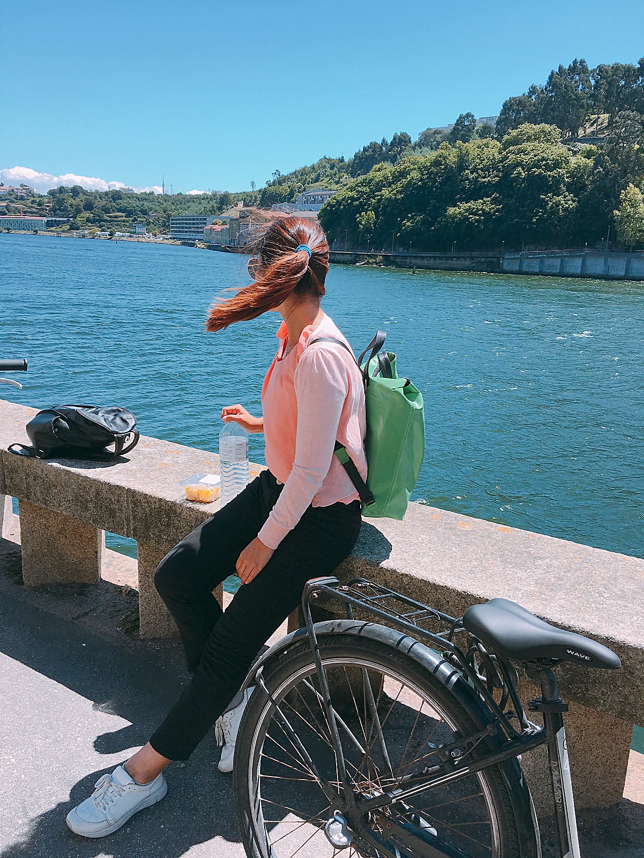 자전거는 상 프란시스쿠 성당(São Francisco do Porto) 근처에 렌트점들이 있어 거기서 보이는 상점으로 우선 들어갔다. 자전거는 대여 시간에 따라 비용이 나왔는데 우리는 넉넉히 왕복 시간과 점심 먹을 시간 등을 고려해서 3시간 정도 대여했던 것 같다. 목표는 도우로강을 따라 가서 수정궁 공원까지 간 후 거기서 싸온 도시락을 먹는 것. 자전거를 아주 잘 타고 직진만 하면 10분이면 갈 수 있는 거리인데 우리는 중간 중간 사진도 찍고 쉬기도 할 것 같아 1시간 이내로 가는걸 목표로 했다. 게다가 난 자전거를 못탄다. 이 난관부터 극복해야 했다.
