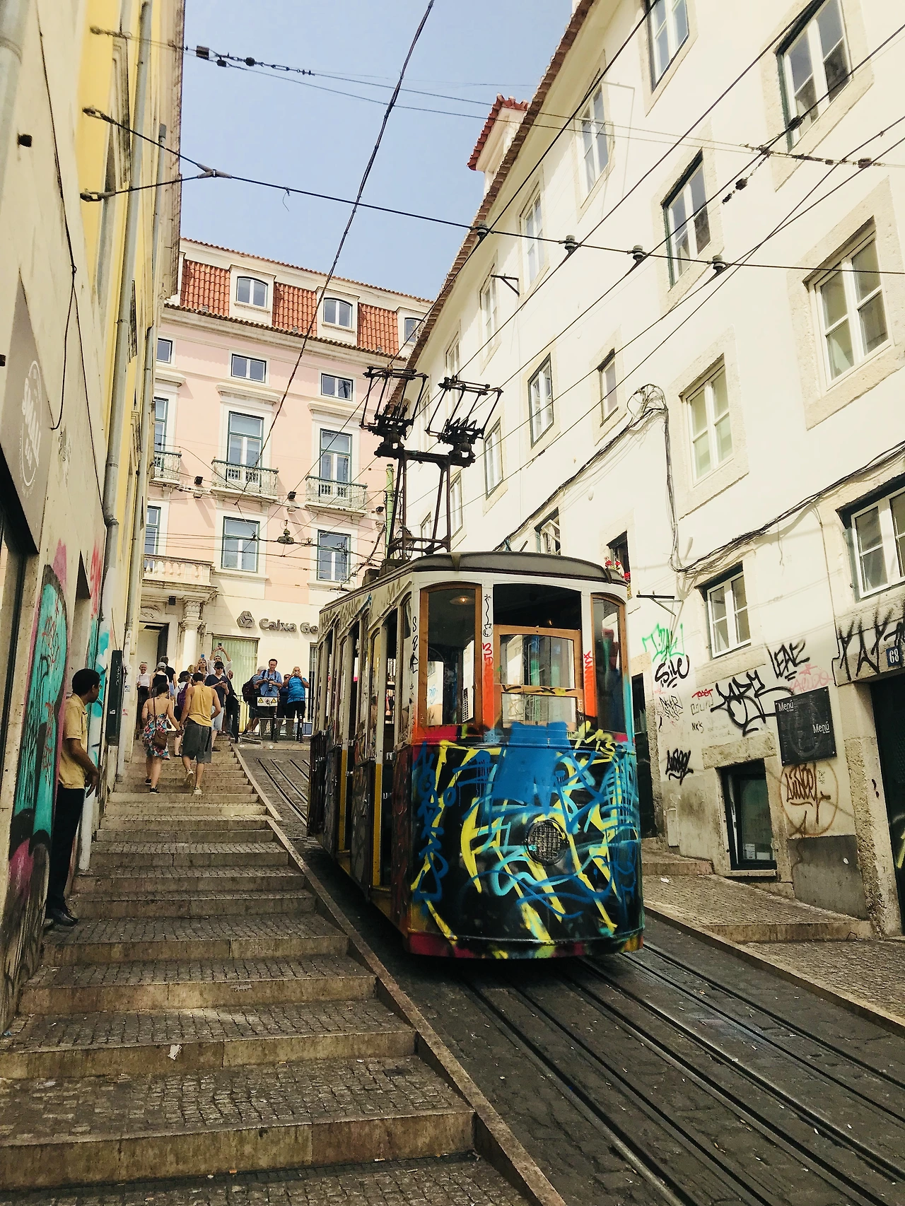 '아, 여기 리스본이구나' 하게 되는 사진이나 영상에는 28번트램과 비카 푸니쿨라라는 빈티지 케이블카가 꼭 나온다. 이 케이블카를 타고 올라가면 골목에 철도가 깔린 배경의 멋진 사진을 찍을 수 있다. 케이블카는 상행선과 하행선 두곳의 정류장이 있는데 Bica - R. S. Paulo에서 타고 올라가면 Bica - Lg. Calhariz 에 내려서 올라오는 푸니쿨라와 저 멀리 보이는 바다 풍경을 볼 수 있다. 특히 노을질 때 가장 많은 사람들이 보러 온다고- 좁고 어두운 경사진 골목을 케이블카 타고 올라가며 보는 모습을 찍으면 한장한장이 엽서같이 보인다. 상행 정류장에 내려 올라오는 푸니쿨라를 기다리다 사진찍는 재미가 있는 곳이다. 케이블카도 Lisboa card나 24시간 교통권으로 탈 수 있고 아침 7시부터 밤 9시까지 운행하니 야경도 볼 수 있다.