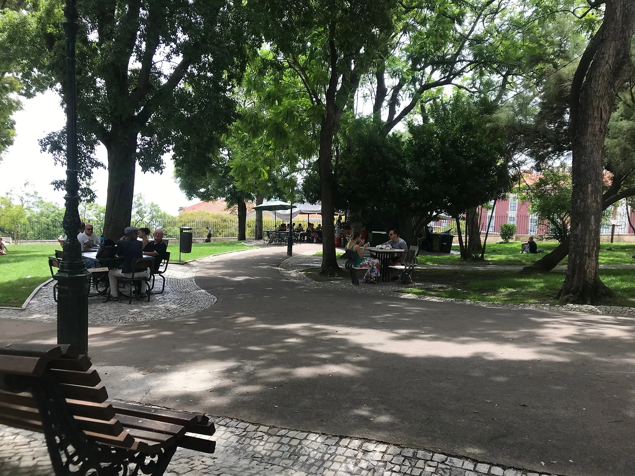 리스본에는 2개의 유명한 전망대가 있다. 그 중에 내가 가본 곳은 리스본에서 가장 오래된 동네인 알파마쪽에 있는 포르타스 두솔(Portas do Sol) 전망대. 알파마의 이곳 저곳을 둘러보며 올라가다보면 어느새 동네의 꼭대기에 도착한다. “태양의 문”이라는 이름처럼, 탁 트인 풍경으로 해가 쏟아지는 리스본을 내려다볼 수 있는 스팟이다.28번 트램을 타면 거의 바로 앞에 내려주지만, 천천히 걸어 올라갈 수도 있다. 걸어가면서 보이는 벽화, 거리 공연, 바다가 보이는 언덕들도 여행의 묘미로 느낄 수 있다.