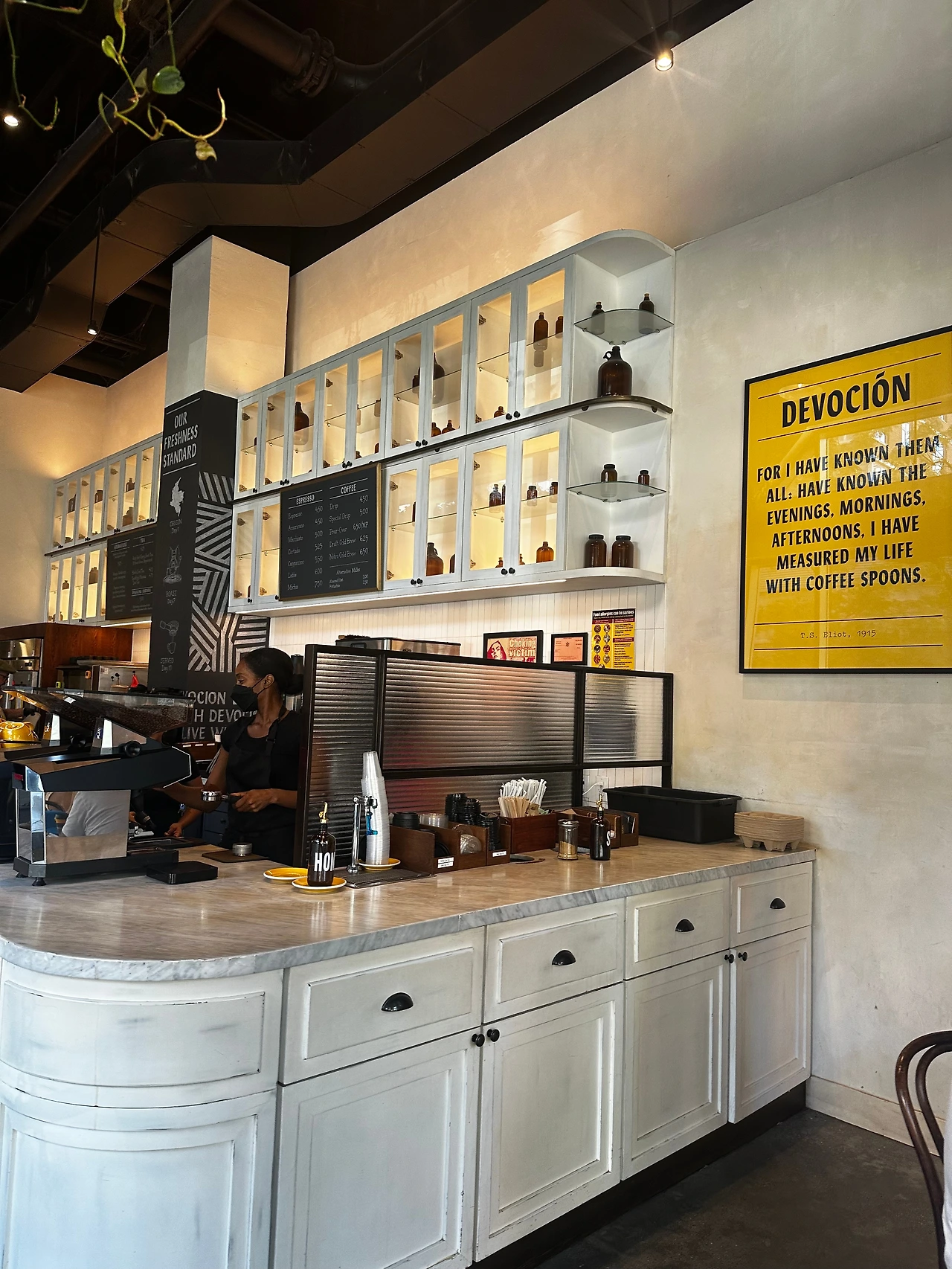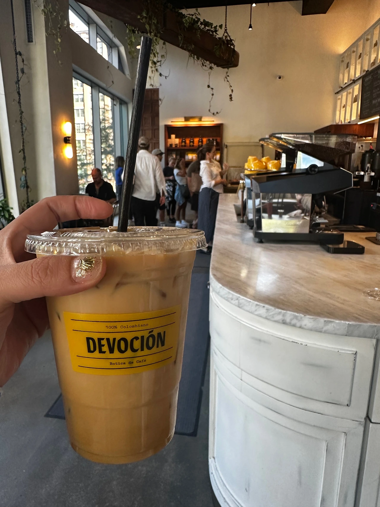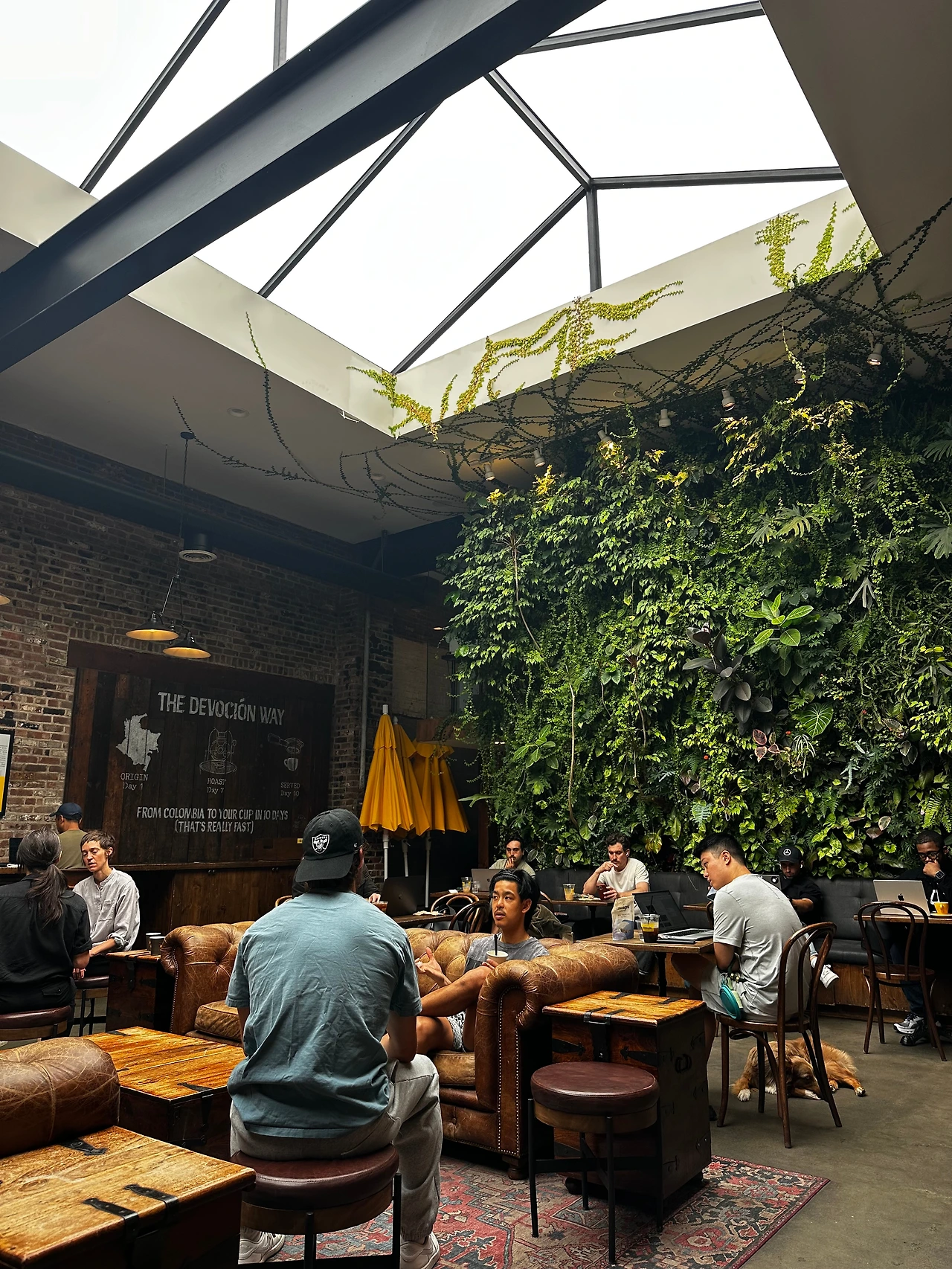 뉴욕 브루클린, 덤보를 가는 길에 눈에 띄는 카페가 있어서 들어간 곳이 데보시온이었다. 여기를 원래 알던 곳이 아니었음에도 나를 자연스레 이끄는 외관과 아우라가 있었다. 이렇게 윌리엄스버그와 그 주변을 걸어 다니다 보면 자연스럽게 발걸음이 멈추게 만드는 Devoción이다. 이곳은 단순한 커피숍이 아니라 사진과 휴식, 그리고 커피 경험 자체가 되는 장소다. 많은 현지 방문객과 여행객이 브루클린 일정 속에서 일부러 찾아오는 이유가 분명한 곳이다. Devoción이 특별한 이유 중 하나는 커피의 신선도다. 이 카페는 콜롬비아 농장에서 직접 수입한 원두를 사용하며, 로스팅 후 빠르게 제공한다는 점이 특징이다. 이 ‘Farm-to-Cup’ 접근 방식 덕분에 커피 맛이 밝고 풍미가 살아 있다는 평을 받는다.