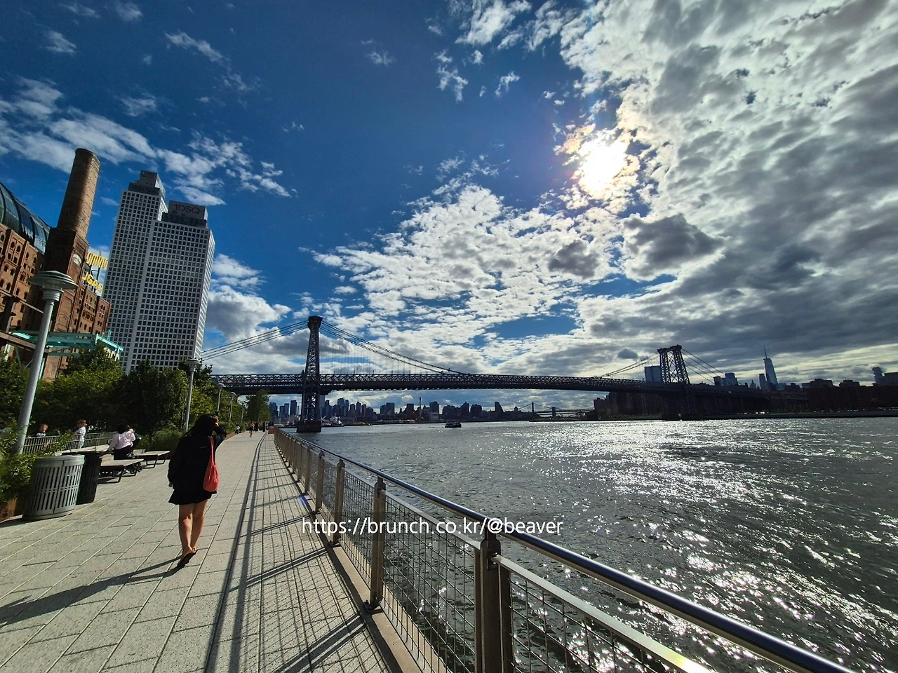 브루클린은 맨해튼과는 또 다른 결을 가진다. 윌리엄스버그나 도미노 파크 근처를 걸으면 허드슨강과 스카이라인이 만드는 풍경이 사진처럼 펼쳐진다. 오래된 붉은 벽돌 건물, 작은 벽화, 강가의 공원 — 이 모든 것이 사진을 찍지 않고는 배길 수 없는 풍경들이다.