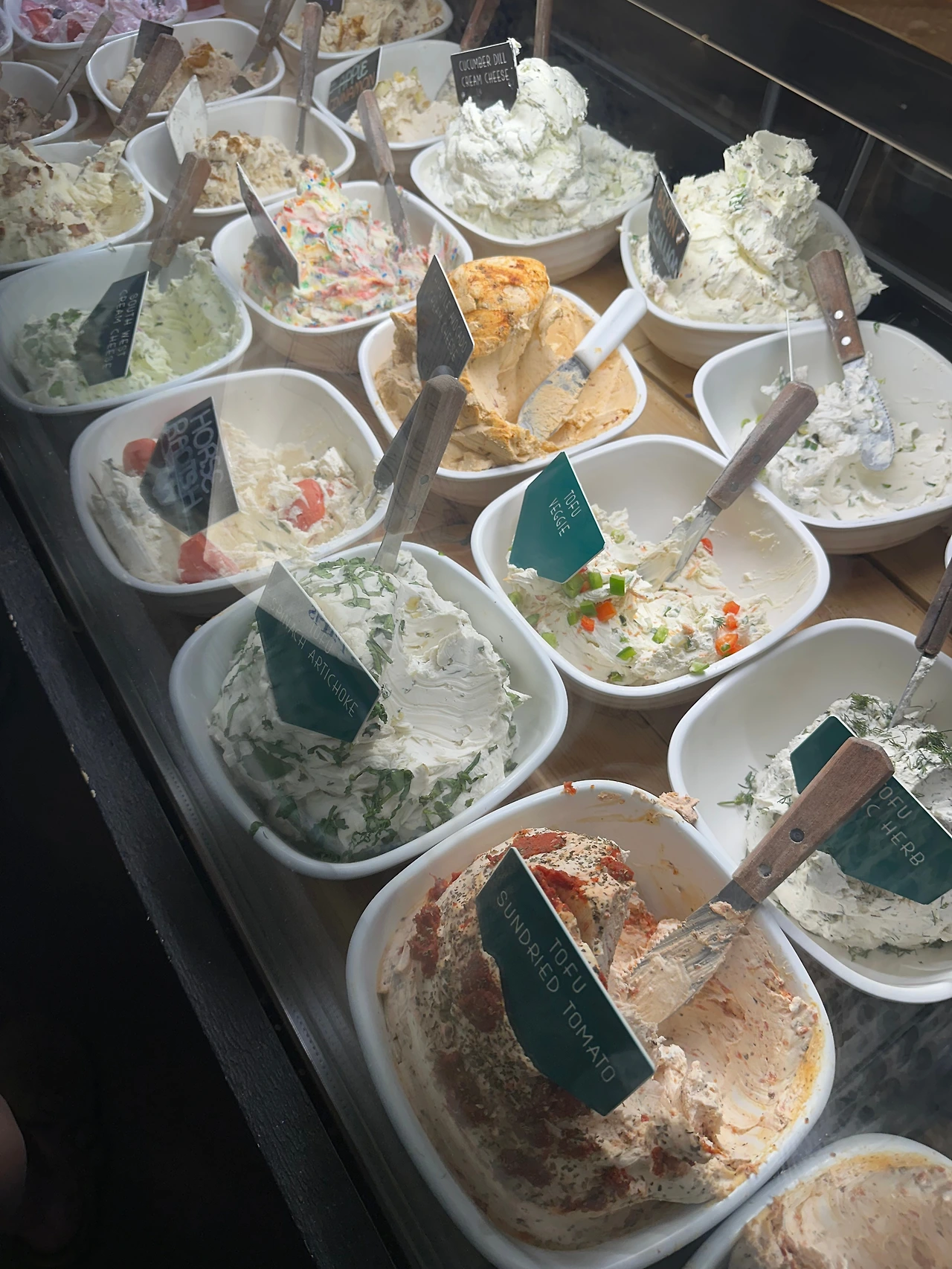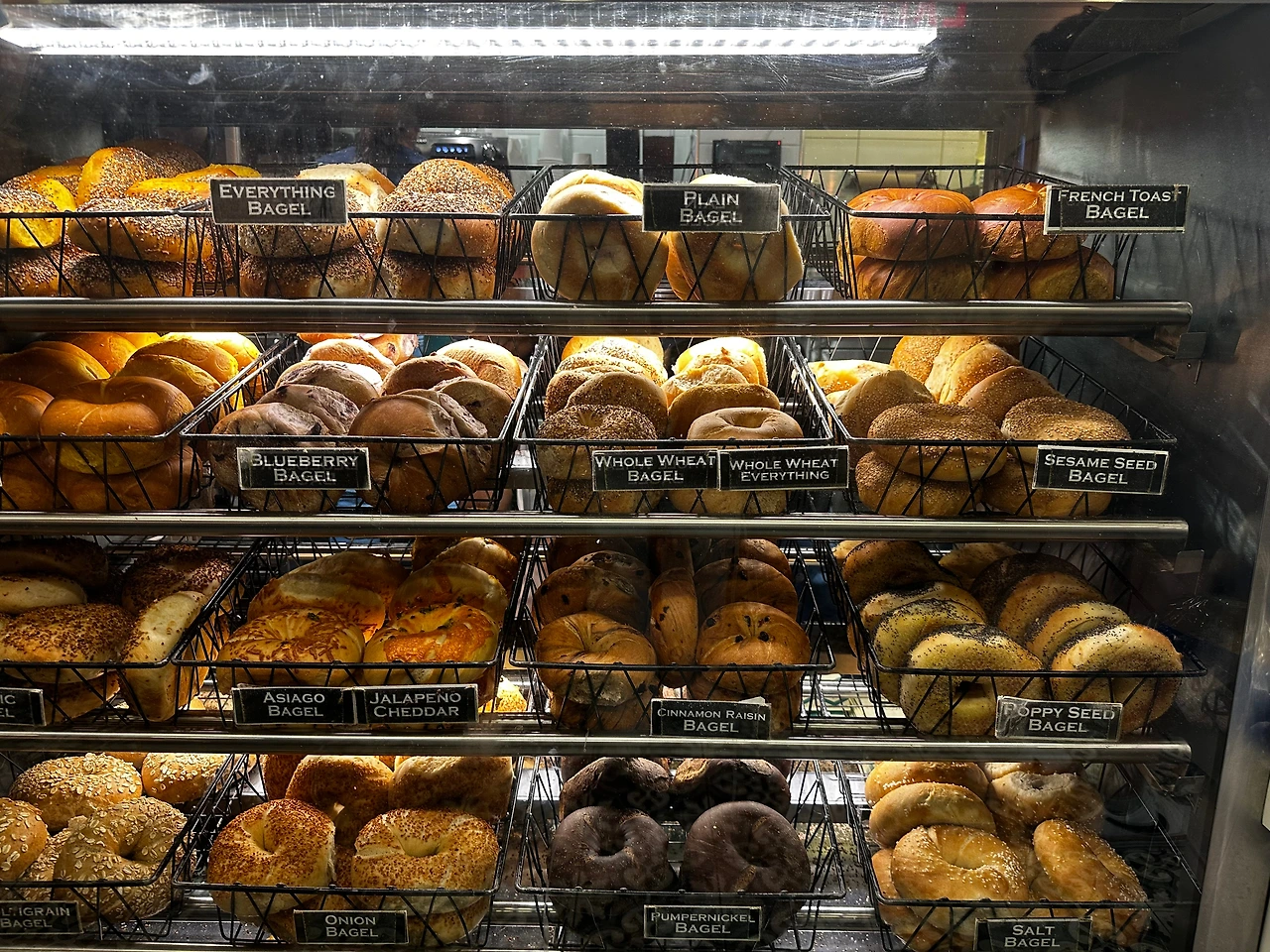 이곳의 베이글은 겉은 단단하고 속은 촉촉하다. 물에 한 번 삶아 구워내는 전통적인 뉴욕 스타일을 고수해, 한 입 베어 물면 밀도 있는 식감이 느껴진다. 특히 크림치즈 종류가 압도적으로 다양하다. 스캘리언, 시나몬 레이즌, 할라피뇨, 허니월넛까지 선택지가 많아 고르는 과정 자체가 즐겁다.