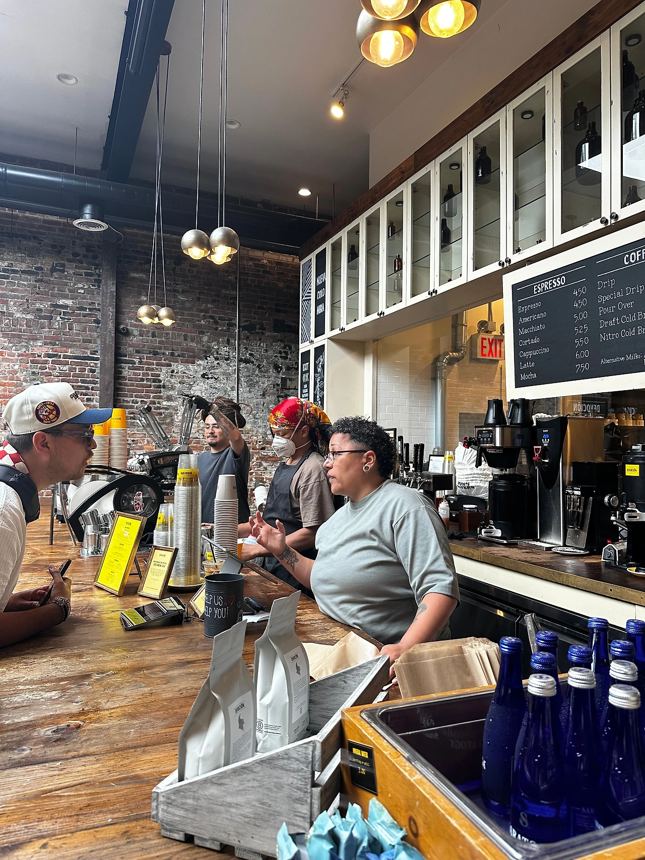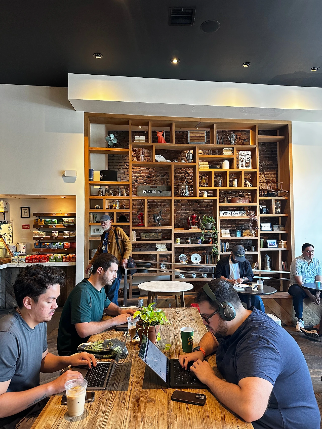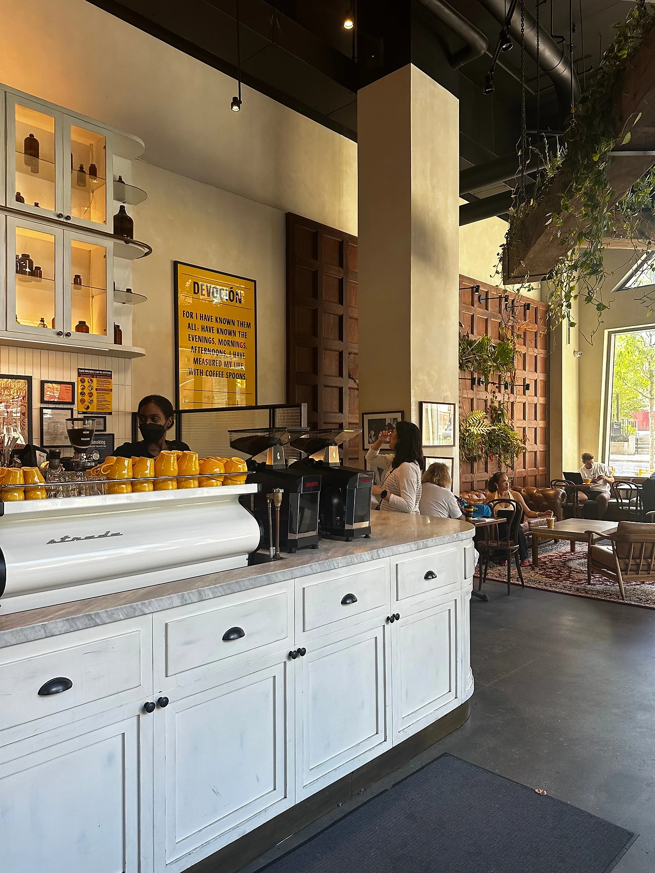 Conwell Coffee는 원래 1930년대 아트데코 양식의 은행 건물이었던 곳을 그대로 살려 만든 카페다. 외관만 보면 이곳이 커피숍이라는 사실을 모르는 사람도 많을 만큼, 입구부터 은행의 원형이 남아 있는 점이 가장 먼저 눈에 띈다. 내부로 들어서면 높은 천장, 원래 은행 금고 자리에 남아 있는 구조물, 클래식 아트데코 장식 등이 조화를 이루며 마치 시간이 조금 느리게 흐르는 듯한 느낌을 준다. 이곳은 영화 촬영지로도 많이 나왔다고 한다. 많은 사람들이 여기서 일도 하고 회의도 하는 듯한 느낌.