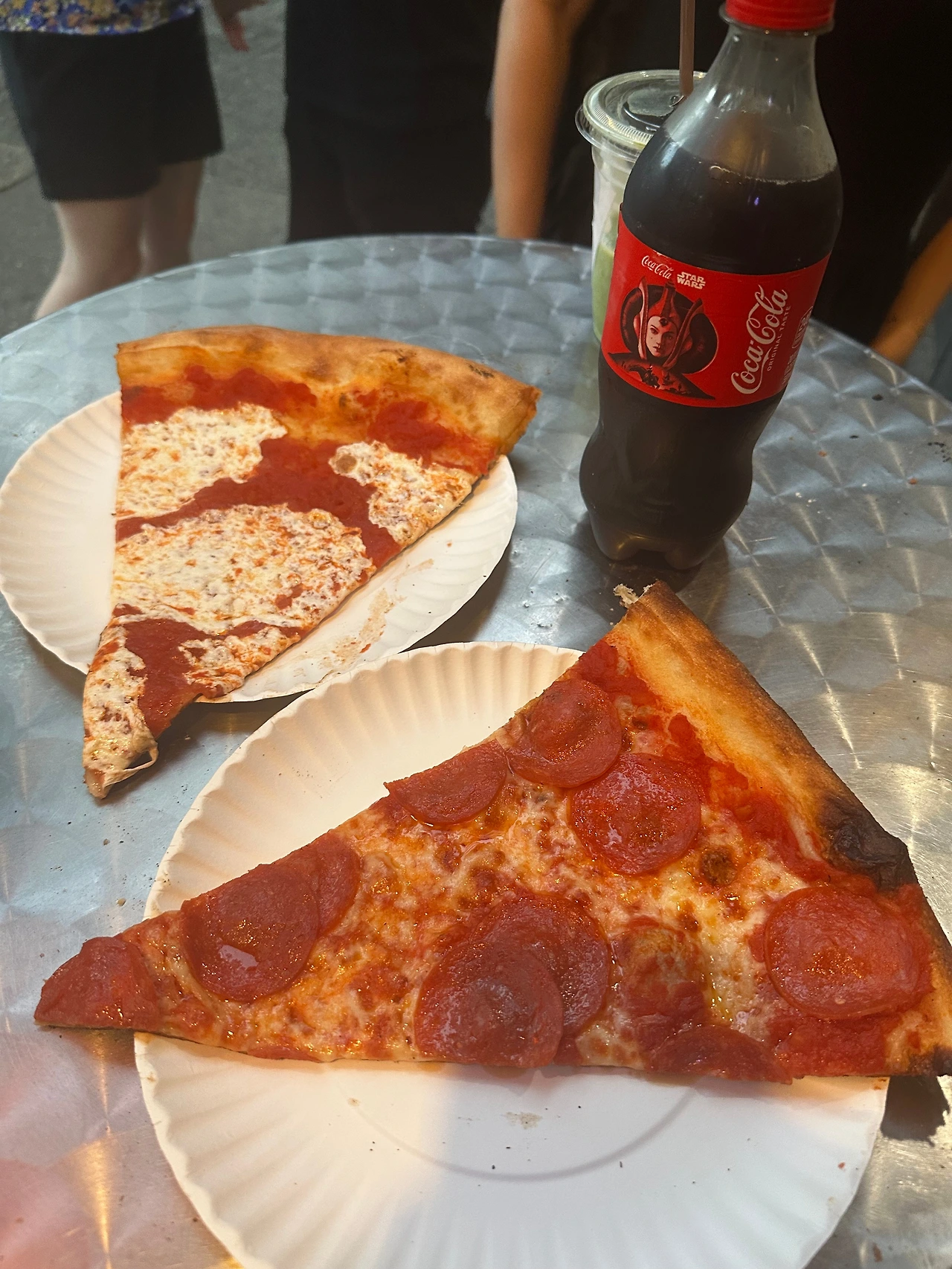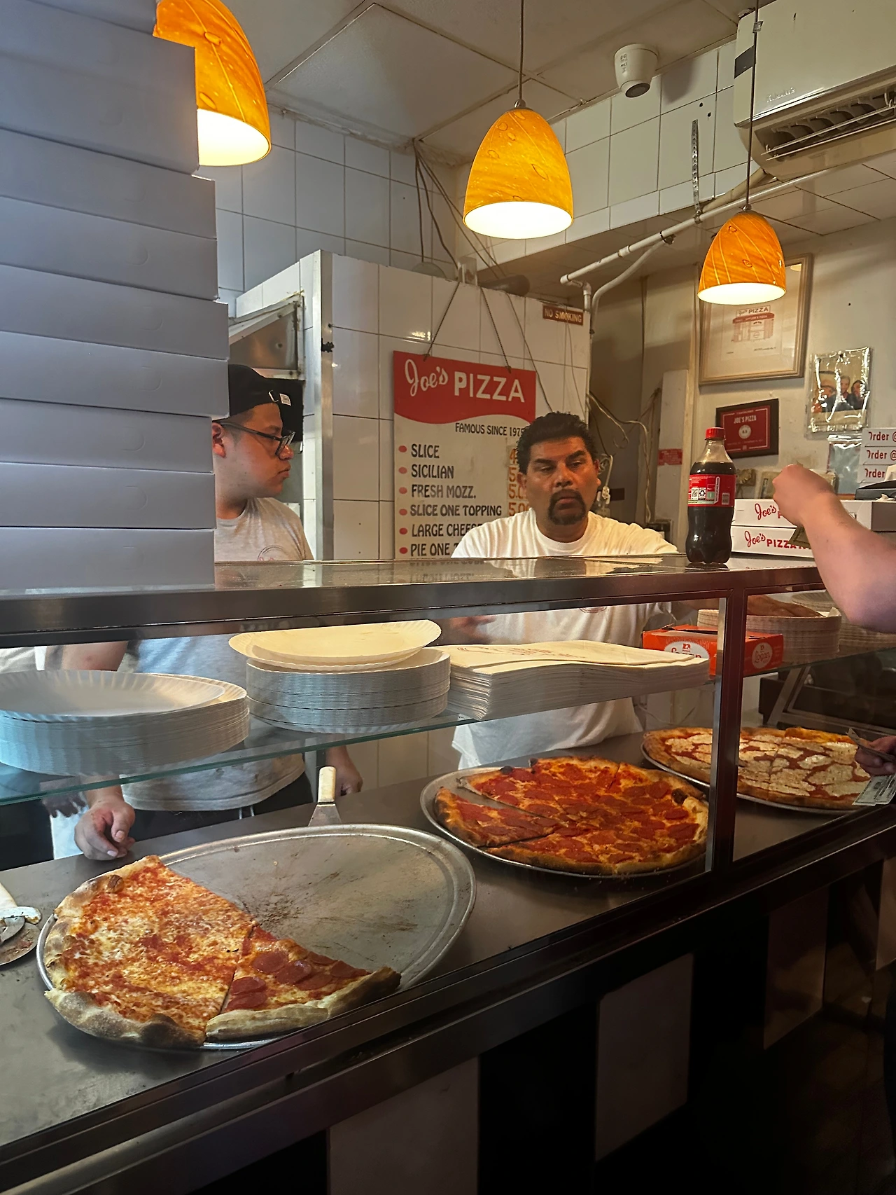 맨해튼 내에는 Joe's pizza 집이 여러 군데에 있다. 그 중에서 그리니치빌리지의 작은 골목에 자리한 Joe’s Pizza는 뉴욕 스타일 피자의 아이콘 같은 곳이다. 영화 스파이더맨에도 나왔던 이곳은 1975년부터 한결같은 클래식 슬라이스를 제공한다고 한다, 종이 접시에 올려진 치즈 피자 한 조각만으로도 충분히 ‘뉴욕에 왔구나’ 싶은 느낌이 든다. 얇고 접히는 크러스트, 심플하면서도 강렬한 토마토 소스, 씹을수록 고소한 치즈 조합은 바로 그냥 뉴욕의 맛이었다. 사실 대부분의 사람들은 '기본' 을 먹고 있었는데, 난 평소 좋아하는 페퍼로니를 시켜보니 생각보다 짠 맛이 강해서 기본을 먹는게 좋을 것 같다.