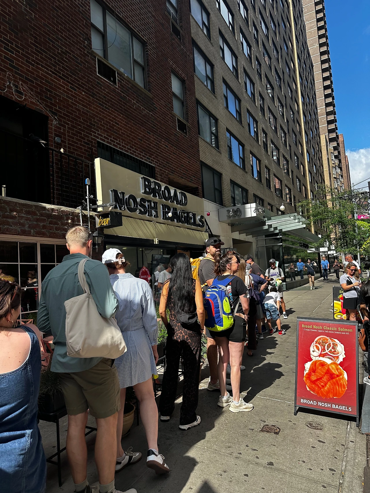 Broad Nosh Bagels은 센트럴파크에서 먹기 위해 들린 곳이다. 센트럴 파크랑 가까운 곳에 위치해 있는데 관광객보다는 동네 주민들이 찾는 베이글 가게라는 인상이 강하다. 하지만 여전히 줄은 참 길었다.