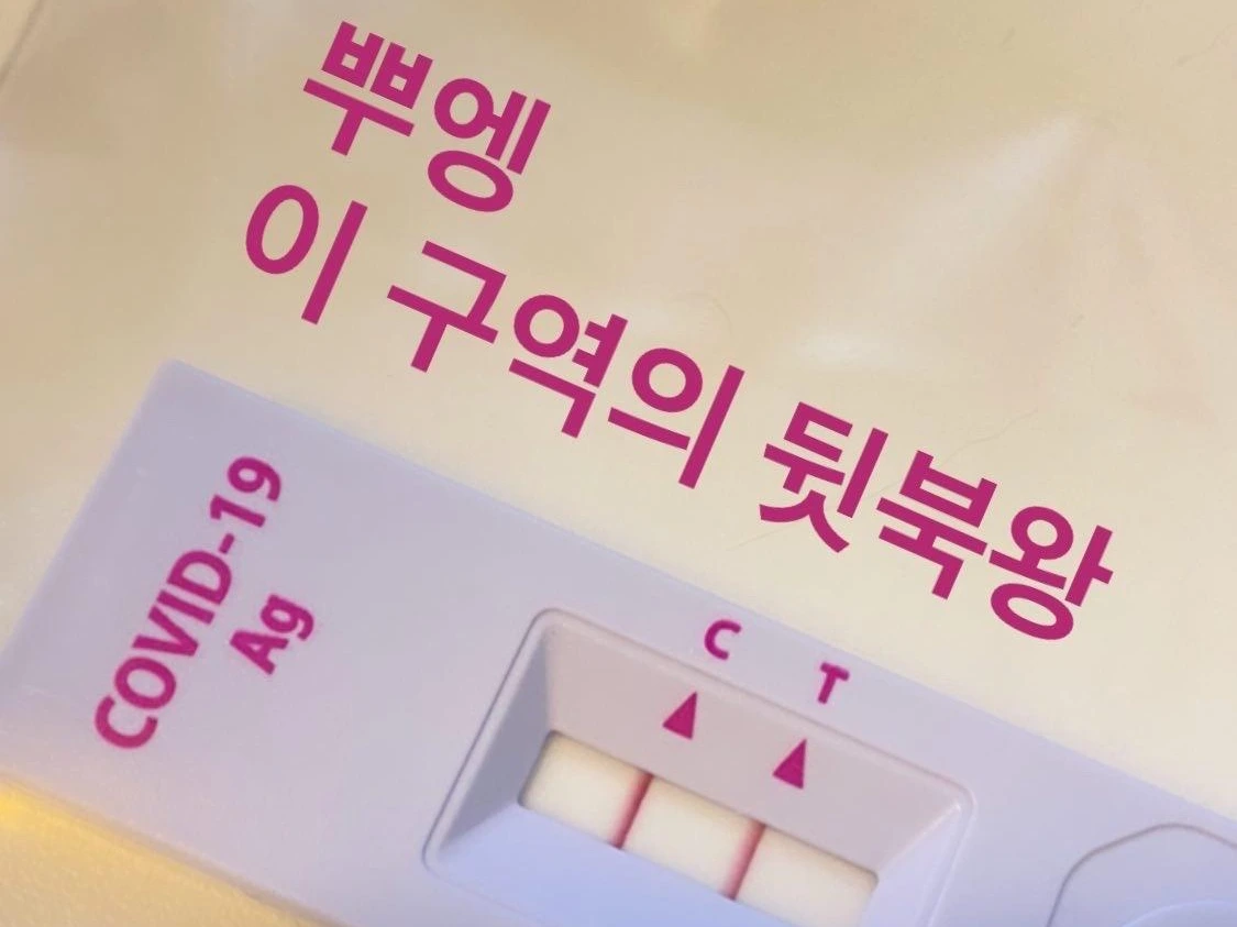 동거인 격리 해제 6시간 전, 만약 내가 음성이라면 격리까진 아니더라도 동거인과 하루 이틀 정도 각방 쓰는 분리 생활을 연장하리라는 기대를 살짝 품고 자가 검사 키트를 꺼냈다. 동거인이 본인의 양성을 확인한 바로 그 식탁에 앉아, 뻥을 조금 보태서 경건한 마음으로, 검체 채취 면봉을 뜯어 목구멍을 한 번 찌르고 그 면봉을 다시 양 쪽 콧구멍에 넣어 휘저었다. 다시 면봉을 용액 통에 넣곤 휘저은 후 뚜껑을 닫고 타로 카드 뽑을 때의 긴장되는 마음으로 키트에 침과 콧물과 검사 용액이 뒤섞인 액체를 톡, 톡, 톡 떨어뜨렸다. 검진 키트가 액체로 젖어가는 몇 초 간 내 대수롭지 않은 기대와 왜인지 모르는 불안도 번져갔다.