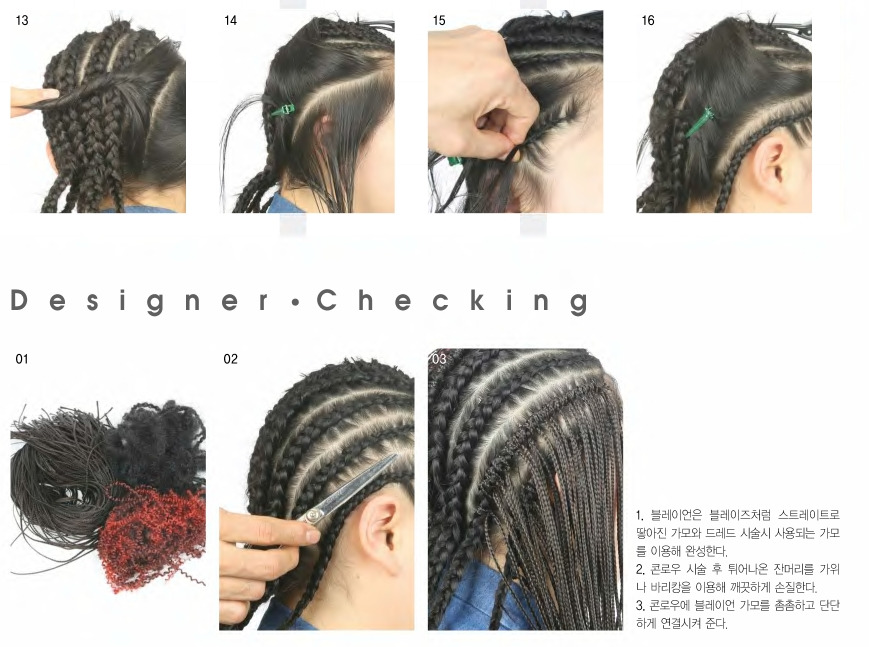 블레이즈의 종류는 참 다양하다. 두피에 머리카락을 붙여서 땋는 콘로우 (완전 콘로우도 있고, 앞쪽 반이나 사이드만 땋는 반 콘로우가 있다), 굵은 형태로 뭉친 듯 땋는 드레드, 원래 머리카락과 가모를 함께 땋는 형태의 박스 블레이즈 (땋는 머리카락의 섹션을 촘촘히 하는지 굵게 하는지에 따라 또 엄청 다양한 헤어스타일이 탄생한다), 두피에 머리를 붙여 땋은 콘로우에 가모를 걸어서 묶는 방식으로 시술하는 블레이언, 그리고 앞서 언급한 헤어스타일을 다양한 형태로 믹스한 온갖 종류의 블레이즈가 존재한다. 보통 가모와 함께 땋는데, 가모(얀(yarn), 수카(suka)라고도 한다)의 컬러 선택을 변주하면 끝도 없이 응용이 가능한 스타일인 것이다.
