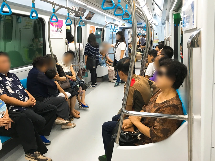 게다가 한 량 당 앉을 수 있는 자리라곤 (원래는 왼쪽와 오른쪽 양쪽에 있는, 초록색 표시의) 노약자석을 제외하곤 20석뿐..!