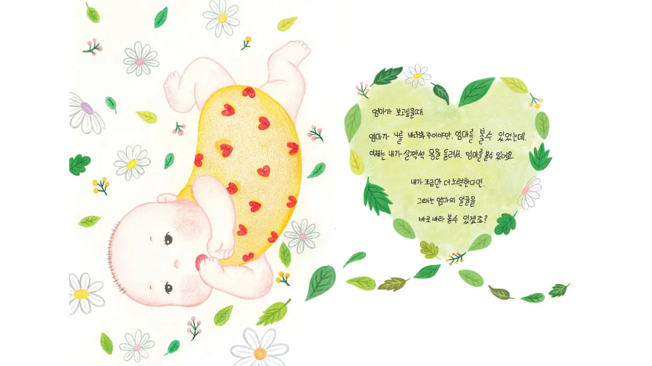 이제는 내가 살짝씩 몸을 돌려서, 엄마를 볼수 있어요.