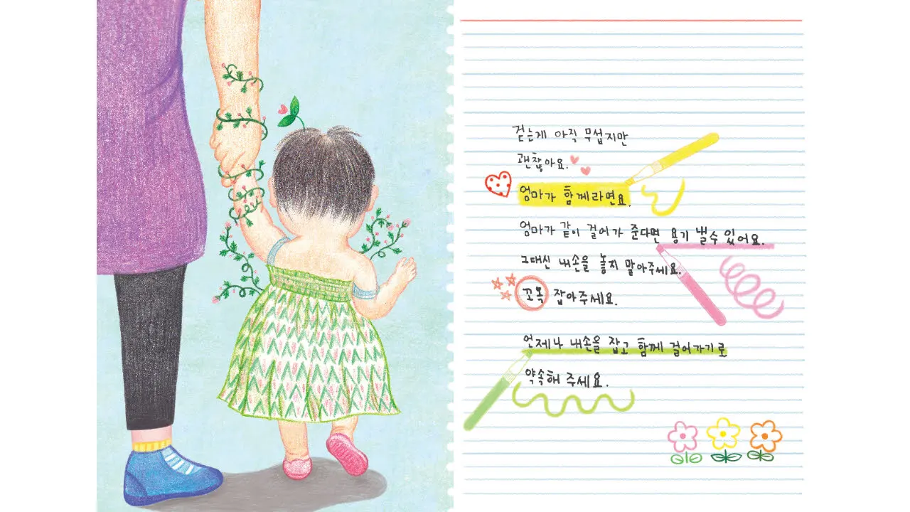 엄마가 같이 걸어가 준다면 용기 낼수 있어요.