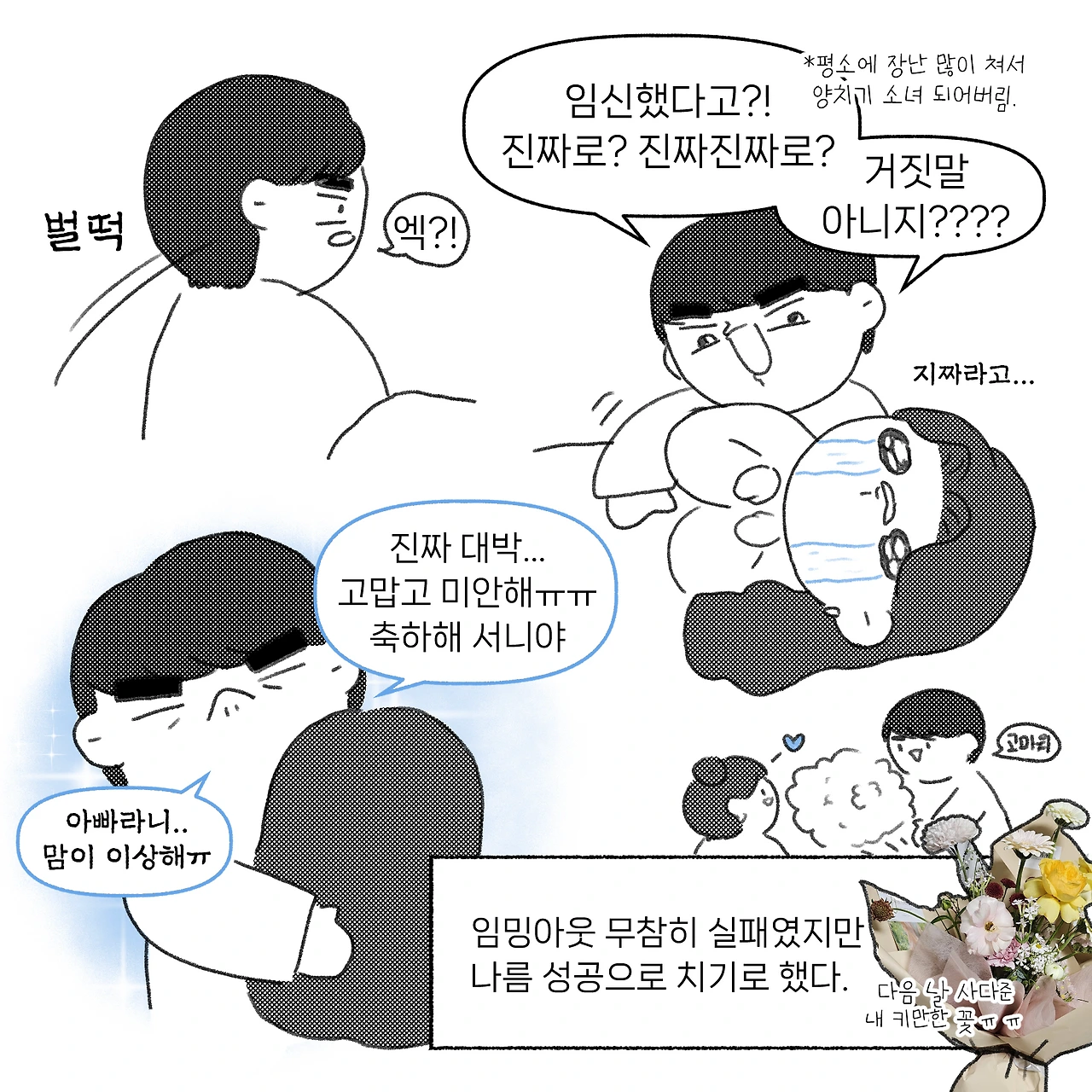 안녕하세요! 작가 '서니'입니다! 아들 둘과 함께하는 아둘맘이에요~! 23년생 베부, 25년생 베동 연년생 현실육아중·ᴗ· 저희 가족의 일상을 그립니다 #결혼툰 #육아툰 #임신툰