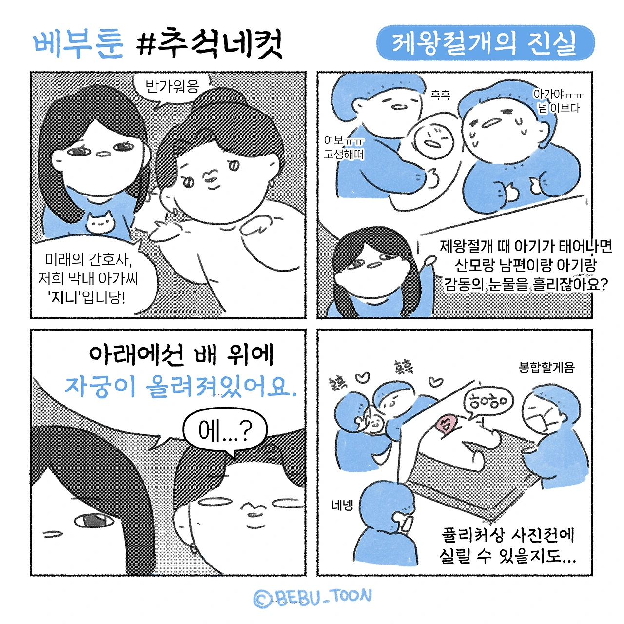 안녕하세요! 작가 '서니'입니다! 아들 둘과 함께하는 아둘맘이에요~! 23년생 베부, 25년생 베동 연년생 현실육아중·ᴗ· 저희 가족의 일상을 그립니다 #결혼툰 #육아툰 #임신툰