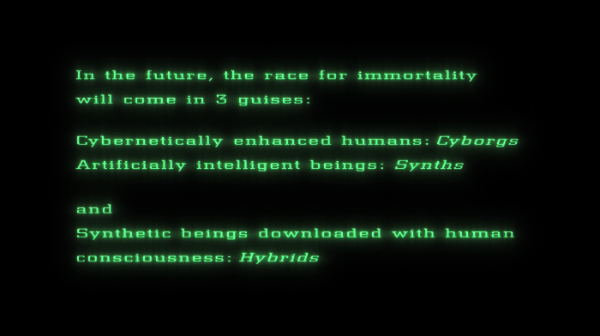 2번과 이어지는 내용인데, 노아는 79년에 상상했던 2100년대의 모습에 새로움을 더해 변화를 줍니다. 우선 기존 영화에 등장했던 사이보그, 합성인조인간(신세틱)에 하이브리드라는 존재를 추가했는데요. 하이브리드는 합성체의 몸에 AI대신 인간의 의식을 직접 다운로드하여, 본질적으로 죽지 않는 인간을 표방합니다. (요즘 화두인 AI는 명함도 꺼낼 수 없는 세상...)