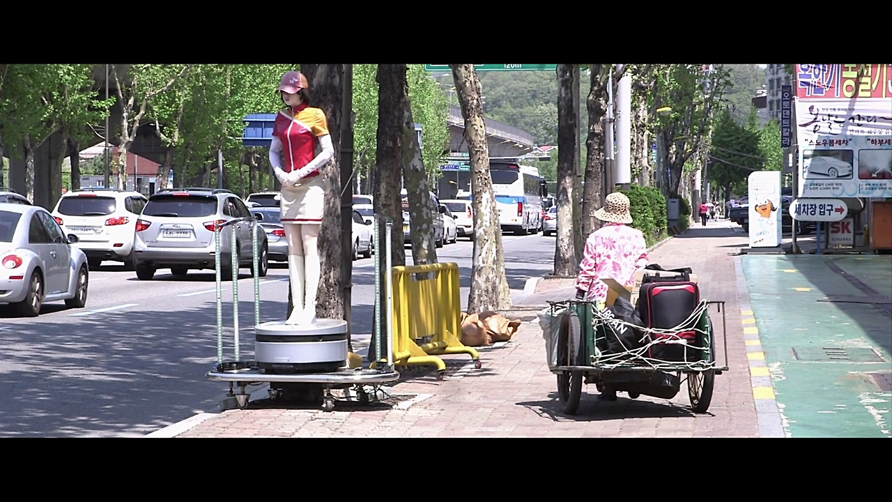 한국인들이 미얀마 군부독재에서 데자부를 느끼듯, 영화는 캄보디아 의류 공장에서 일하는 여성 노동자들에게서 50년 전 한국의 여공들과 같은 목소리를 찾는다. 그들은 얼마에 팔리는지도 모르는 수출용 의류 한 벌을 아마도 그 가격의 몇십 분의 일도 안 되는 돈을 받고 만들어낸다. 그들의 삶은 눈을 가린 포스터 속 인물처럼 이해불가, 정보부족이다.