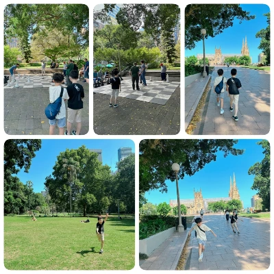 기념품 샵에 잠깐 들렀다가, 위에서 내려다보았던 하이드파크로 이동한다. 아이들이 파크를 원한다. 도심 속 거대한 공원. 나무들이 우거져, 한여름에도 시원한 그늘에서 휴식할 수 있고, 세인트 메리 대성당도 공원 한가운데 있다. 여기에도 커다란 체스판이 있어 시민들이 게임을 즐기고 있다. 지호와 이든이도 구경하는 사람들 틈에 끼어본다.