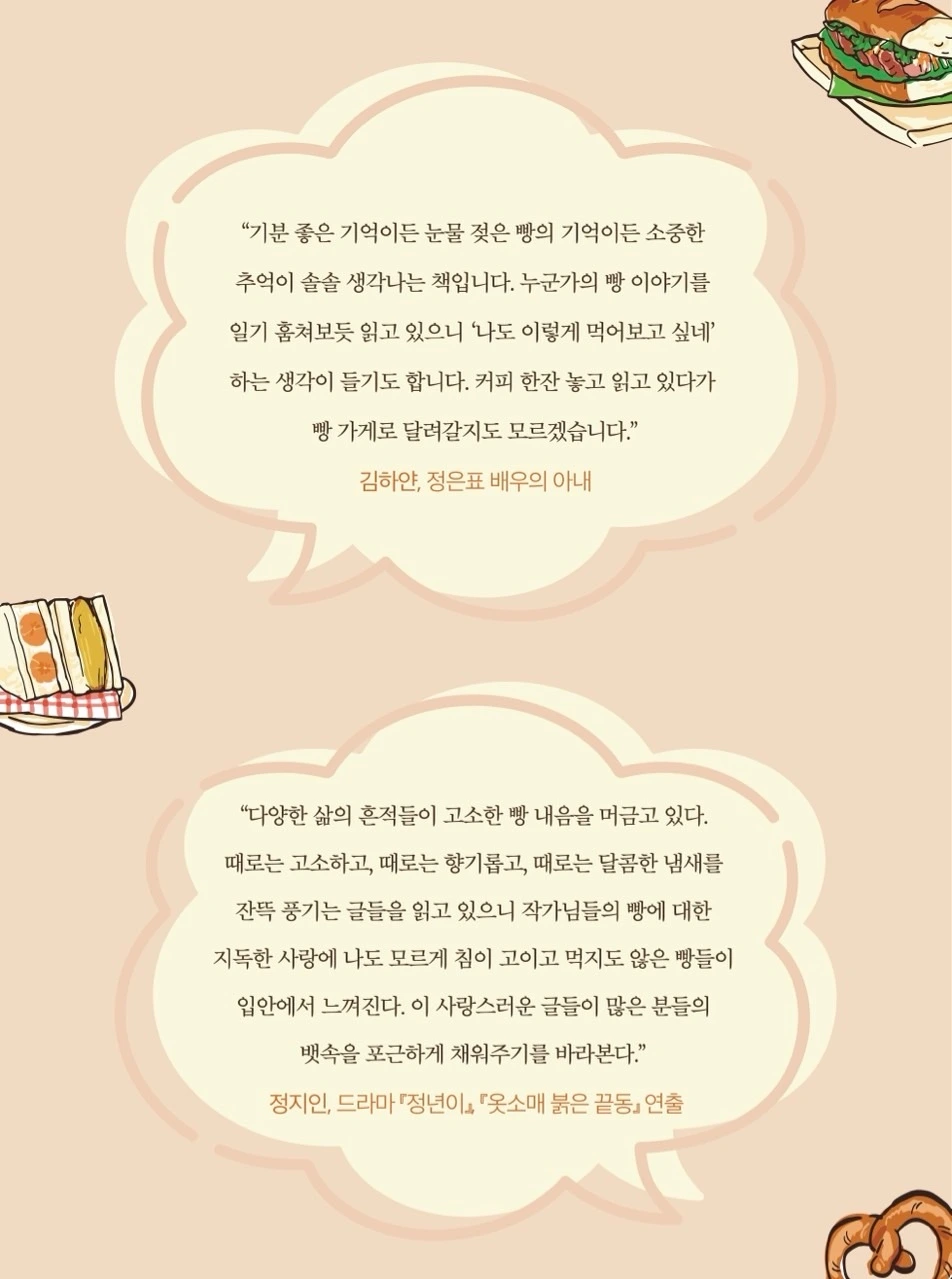 적어도 빵순이에게는 그러했습니다. 빵과 함께 인생의 굽이굽이를 버텨왔으니까요. 우리들의 이야기를 읽고, 여러분의 이야기도 들려주세요. 추억의 빵이 있으신가요? 우울할 때 문득 떠오르는 빵은요?