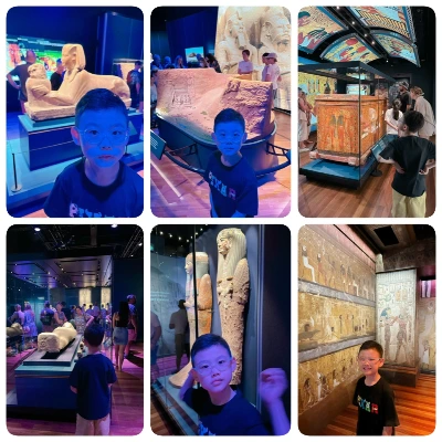 지호에겐 마치 원래 관람하려고 했던 거처럼, 특별전부터 볼 거라고 지호가 좋아하는 이집트 피라미드와 파라오를 보러 가는 거라고 애써 포장을 해본다. 입장이 시작되고 우리는 텅 빈 공간으로 들어섰다. 람세스 왕에 대한 영상이 시작되고 음악과 내레이션이 흘러나온다. 지금까지 나에게 박물관은 발과 눈을 움직여서 전시되어 있는 걸 둘러보는 행위였는데, 이건 뭔가 신선하다. 과거 이집트로 시간 여행을 떠나는 느낌. 그때의 대단했던 문화만큼 웅장하고도 신비스러운 분위기로 시작하는데, 나에게는 감동이었지만 겁이 많은 아들에겐 불안을 주었나 보다. 어두컴컴한 분위기와 공간을 꽉 채우는 음악이 지호의 취향과는 거리가 멀었다. 어두운 것도 싫어하고 귀도 예민해 아직 극장을 못 가는 아들이니 어쩌면 너무 당연한 반응일지도. 내 팔을 동아줄 마냥 꽉 붙잡고 매달려있다. 엄마의 가스라이팅에 애써 용감한 척하며 관람을 시작했지만 나만 아는 지호의 긴장된 표정이 자꾸 보인다. 전시 중간쯤 왔을 때, 한계가 왔는지 나를 멈춰 세웠다. “제발 빨리 나가면 안 돼요?” 간절한 눈빛으로 울먹이는데 파라오고 나발이고 아닌 건 아닌가 보다. 어쩔 수 없이 빠른 걸음으로 값비싼 전시를 지나치고 출구까지 왔다. 겨우 탈출에 성공한 듯 안도하는 아들의 표정. 그리고 심란한 내 마음. 구경이라도 잘했다면 비싼 티켓이 아깝지 않았다고, 어이없는 실수를 정당화할 수 있었는데. 어쩔 수 없다. 인정할 건 인정하자. 내가 정신을 못 차려서 오늘은 생돈을 날린 거니까.
