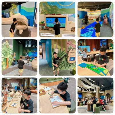 자연사 박물관 2층에는 "Burra"라는 어린이들의 위한 체험관이 따로 있었다. 그래서 평일이었음에도 방학을 이용한 아이들이 많았던 거다. 오늘처럼 덥거나, 춥거나 비 오는 날엔 박물관이 최고의 놀이터이자 학습터가 된다. Burra는 원주민 언어로 장어라는 뜻이란다. 입구에 커다란 장어 모형이 있는 이유가 있었다. 어린이관은 아이들이 좋아할 만한 인테리어로 꾸며져 있었고 스크린 활동, 빔프로젝트, 퍼즐, 색칠 공부, 만들기 등 다양한 체험이 준비되어있다. 아이들의 눈높이에서 보고 듣고 느끼도록 도우려는 박물관측의 배려가 느껴졌다. 지호도 들어서자마자 신이 나서 여기 갔다 저기 갔다 쉴 틈이 없다. 자유롭게 둘러보다가 만들기와 그림 그리는 곳에 멈췄다. 원래 미술을 좋아하는 아이라 뭐든 실컷 해보라고 나는 일부러 좀 떨어진 곳에 앉았다. 테이블에 자리 잡더니 준비되어 있는 재료들을 눈치껏 챙겨 와 아이비스의 새부리를 만들었다. 다음은 새 그림을 한 장 가져오더니 원하는 색으로 알록달록 색칠을 한다. 영어를 못하니 현지 아이들과 어울리는 건 애초에 기대조차 하지 않았다. 하지만 쭈뼛거림 없이 하고 싶은 걸 다 해내는 아들을 보니 뭔가 안심이 된다. 그런 당당함으로 계속 세상을 살아가길 바란다.