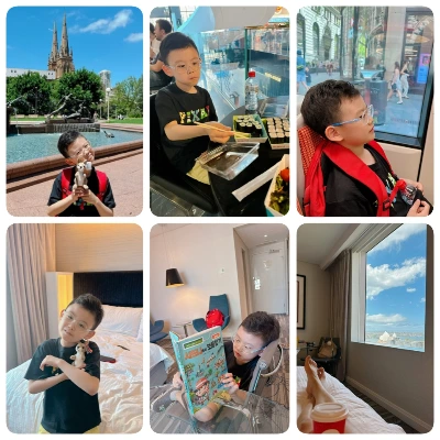 호텔로 돌아온 우리. 지호는 아기 캥거루랑 놀기 시작하고 나는 지친 몸을 곧장 침대에 뉘인다. 오늘은 호텔에서의 마지막 밤이다. 원래 밤늦게까지 돌아다니며 여행하는 스타일은 아니지만, 오늘은 기온이 내려가는 저녁이 되면 시드니의 밤을 즐기러 나가볼까 한다.