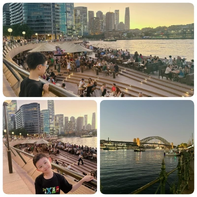 축제 기간이 아니더라도 오페라하우스와 하버브리지는 늘 조명으로 반짝인다. 그래서 우리는 시티에서의 마지막 밤을 오페라하우스 바로 아래에 위치한 오페라 바에서 보내기로 했다. 오페라 바 바로 옆에는 오페라 키친이라는 식당도 있긴 하지만, 남편과 나는 술도 한 잔 하며 간단한 요기를 할 수 있는 캐주얼한 오페라 바를 더 좋아했다. 오늘은 아들과의 데이트. 시드니 다른 모습을 제대로 보여주고 싶다.