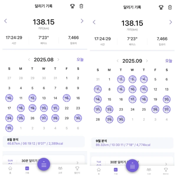 와치가 없어도 휴대폰에 어플 하나만 있으면 된다. 심박수만 빼고 모든 기록이 남는다. 처음엔 시간과 거리 외엔 관심이 없었지만, 달리다 보니 페이스와 케이던스에도 눈이 간다. 달리는 건 여전히 힘들다. 하지만 거북이처럼 느리던 속도도 조금씩 빨라지고, 그 작은 변화가 또 달릴 힘이 된다. 더디지만 꾸준히 나는 나를 단련하고 있고, 나의 러닝 역사는 어플 속에 쌓이고 있다.