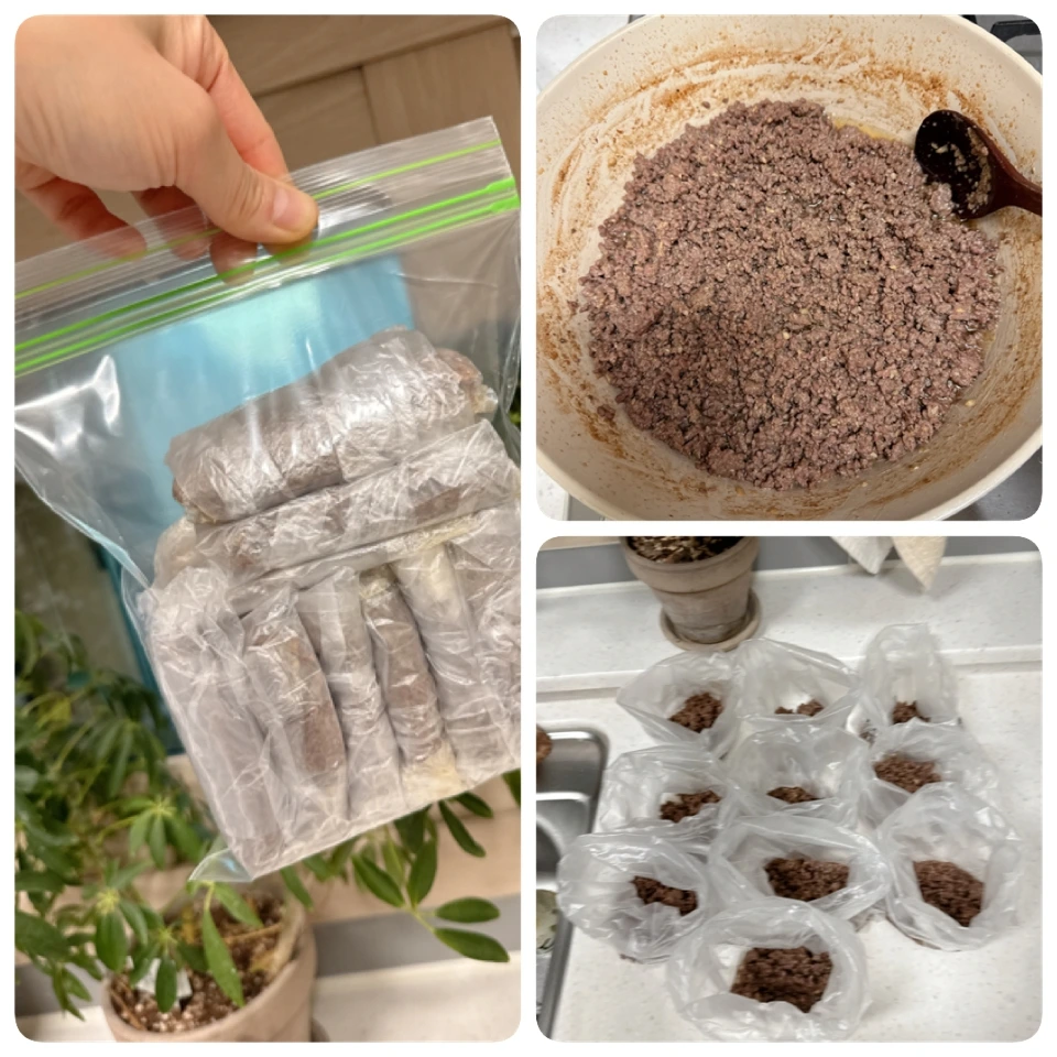 3. 식혀서 2T (40g)씩 소분해서 납작하게 비닐에 얼린다. - 약 10개가 나옵니다.