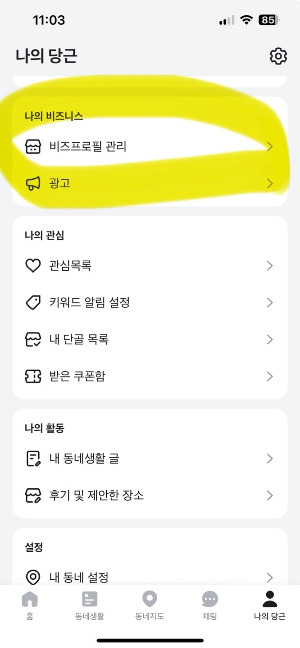 그러던 중 당근마켓 플랫폼 안에 있는 '비즈프로필'이라는 메뉴를 발견했고