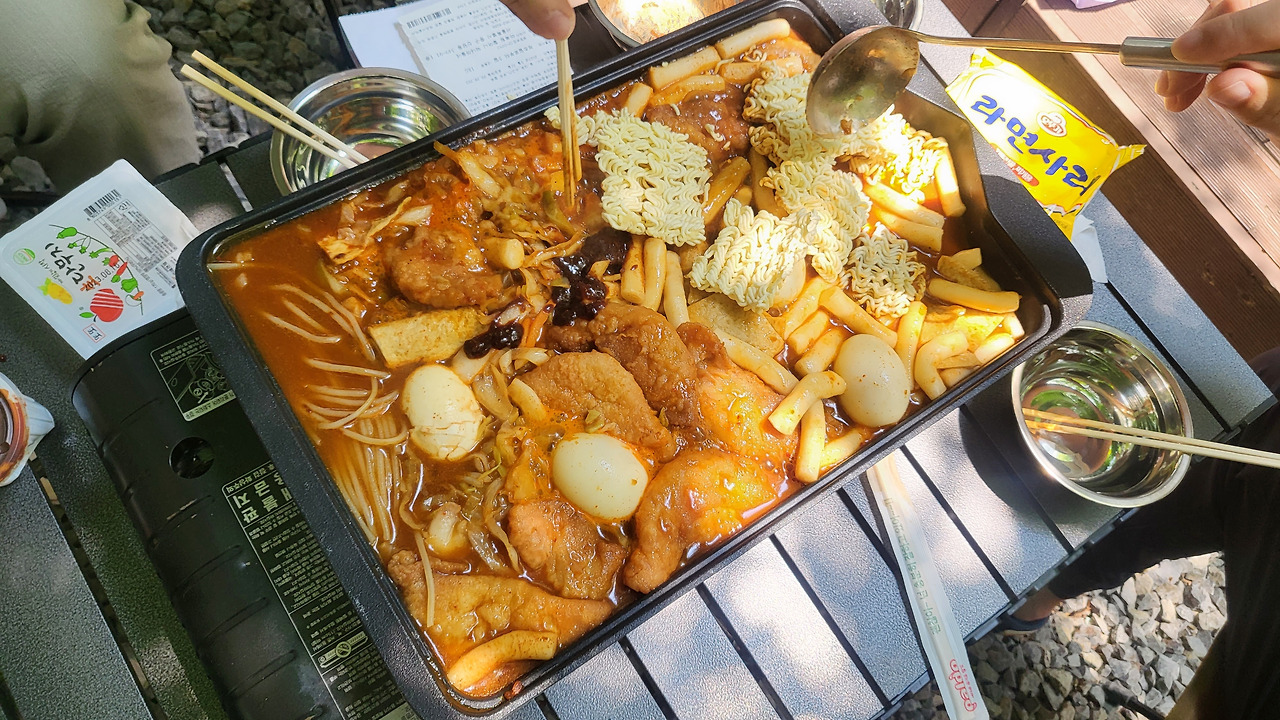 점심은 언니가 특별히 공수해 온 '신당동 마복림 떡볶이'라고 한다. 막내아들인지 몇째 아들인지가 운영하고 있다고 하던데 대대손손 이어진 장인의 손맛이니 기대가 된다. '구이바다'라고 하는 만능 버너에 모든 재료를 쏟아부었더니 양이 꽤 많다. 이 많은 양을 어른 4명이서 나눠먹으니 점심부터 포만감 200%다.