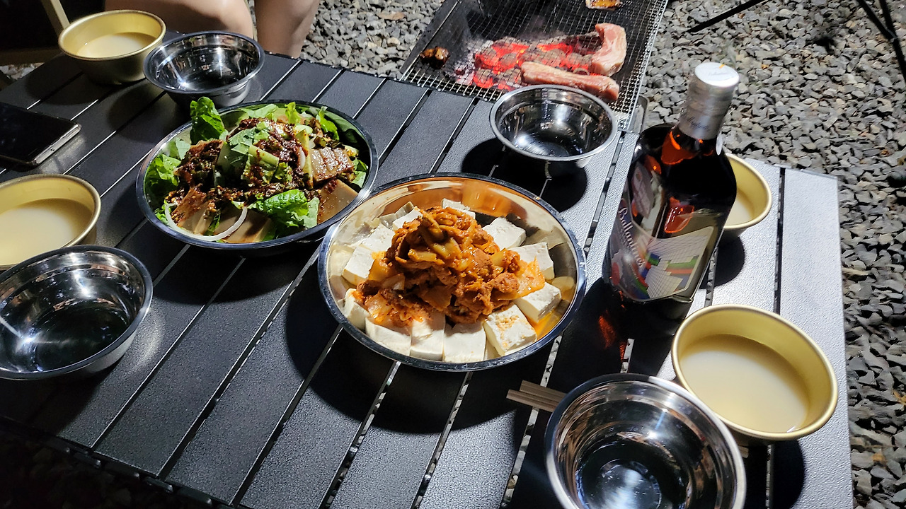 "대박~ 캠핑장에서 도토리묵에 두부김치? 와 ㅠㅠ 막걸리까지"